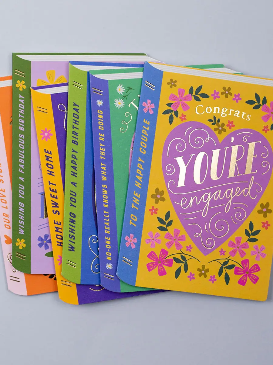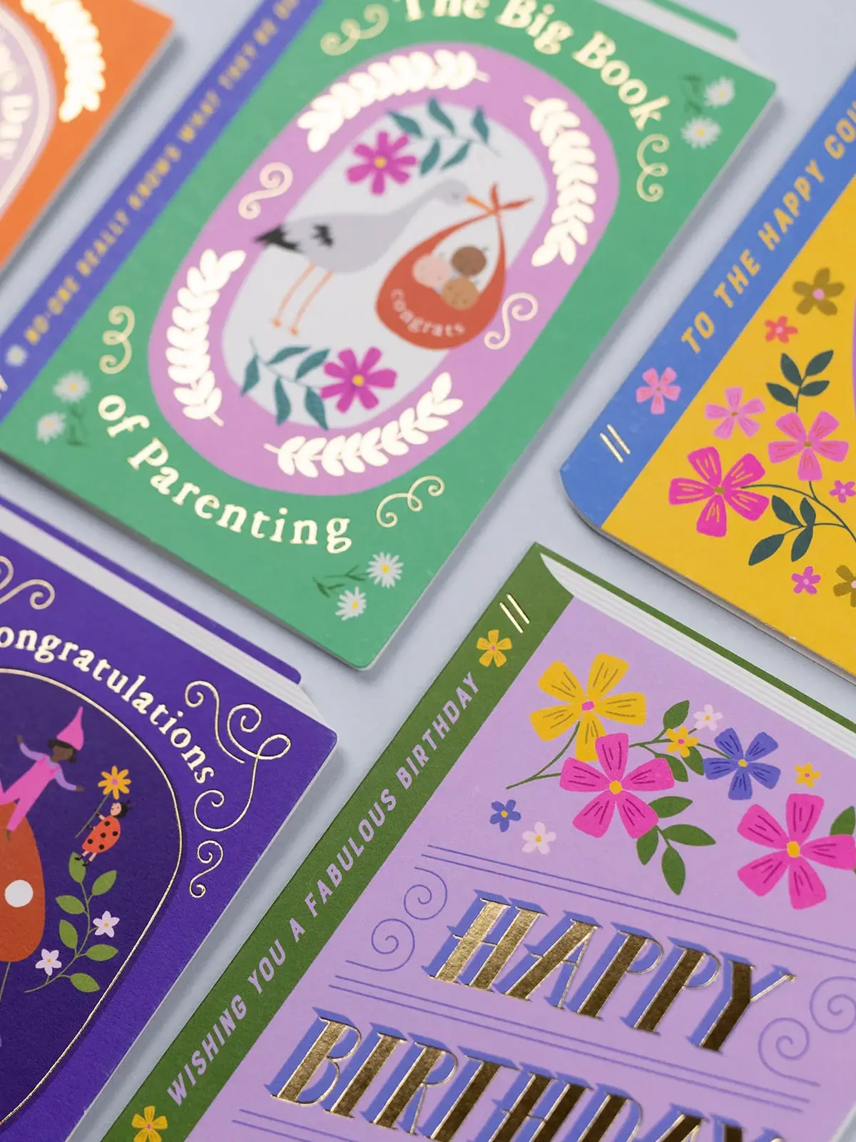Celebrate the big day with this unique birthday card, which is die cut into the shape of a book. The gold foil on the front cover of this storybook birthday card reads “Happy Birthday”, while the spine of the book offers a second caption reading “Wishing...
