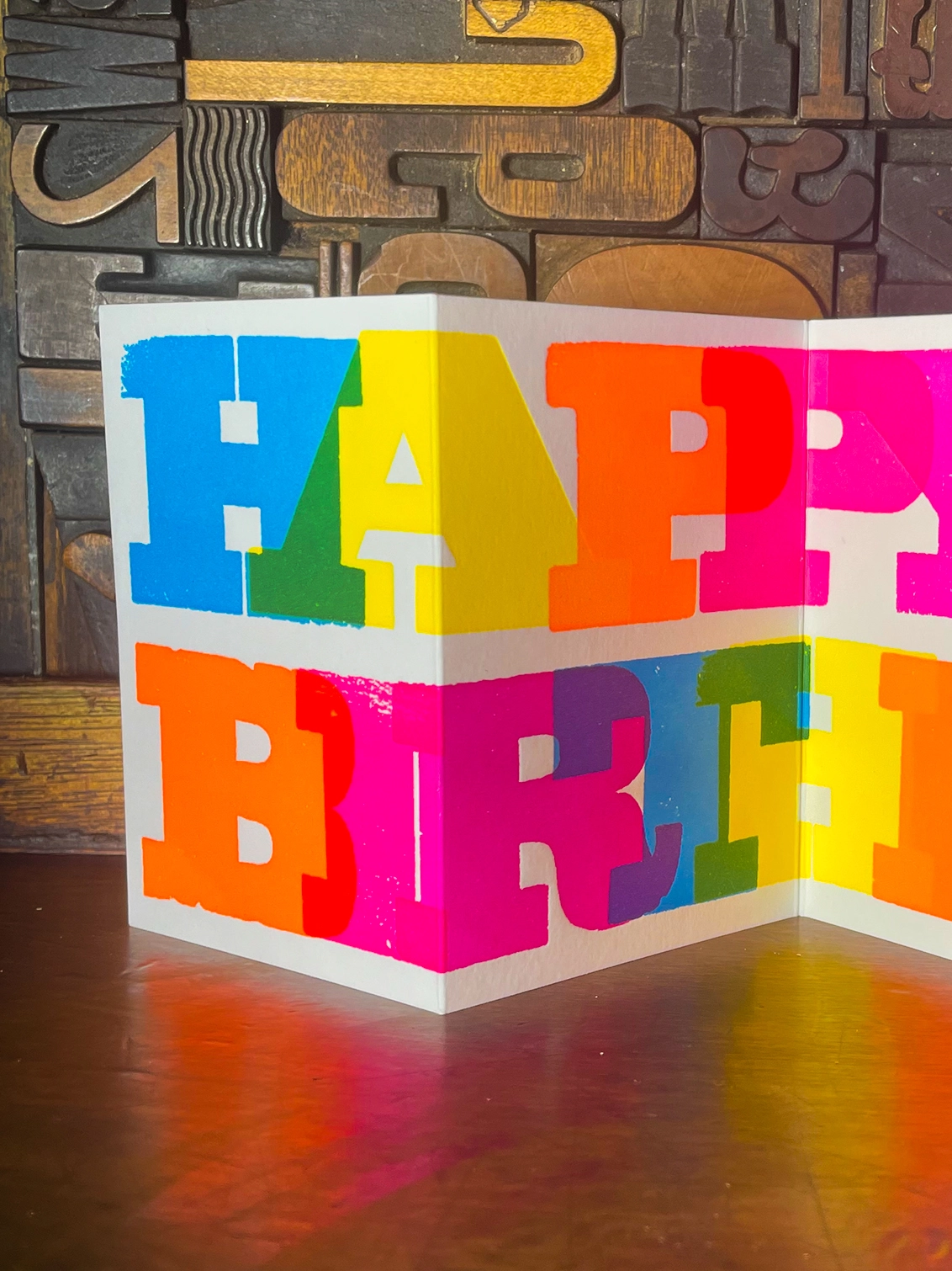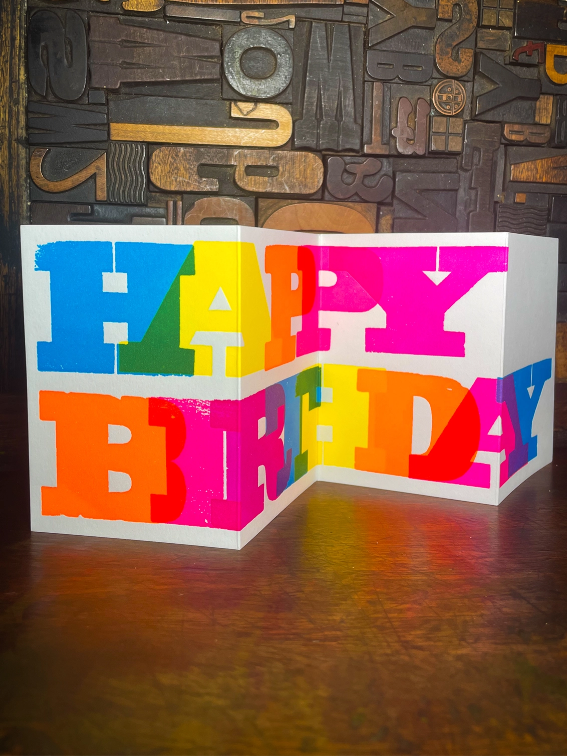 Happy Birthday | Concertina Letterpress Card | Flouro Inks