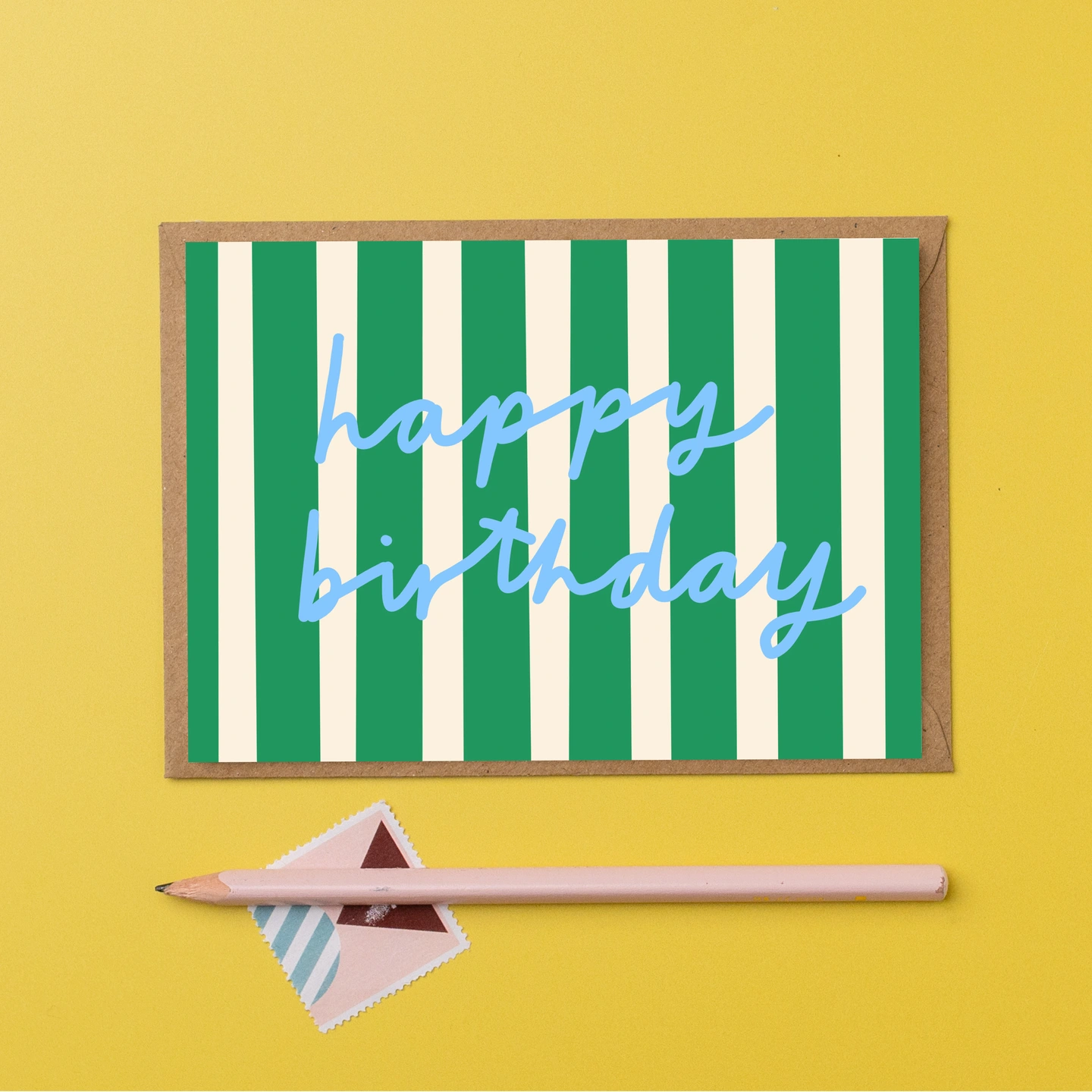 'Happy Birthday' Green Stripe Birthday Card