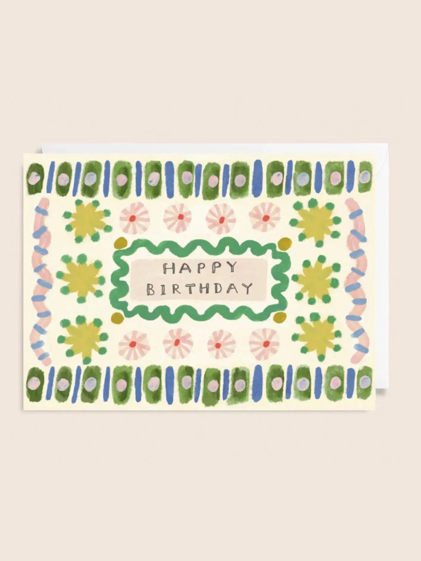 'Happy Birthday' Card with wavy design. Illustration by Olivia Holden