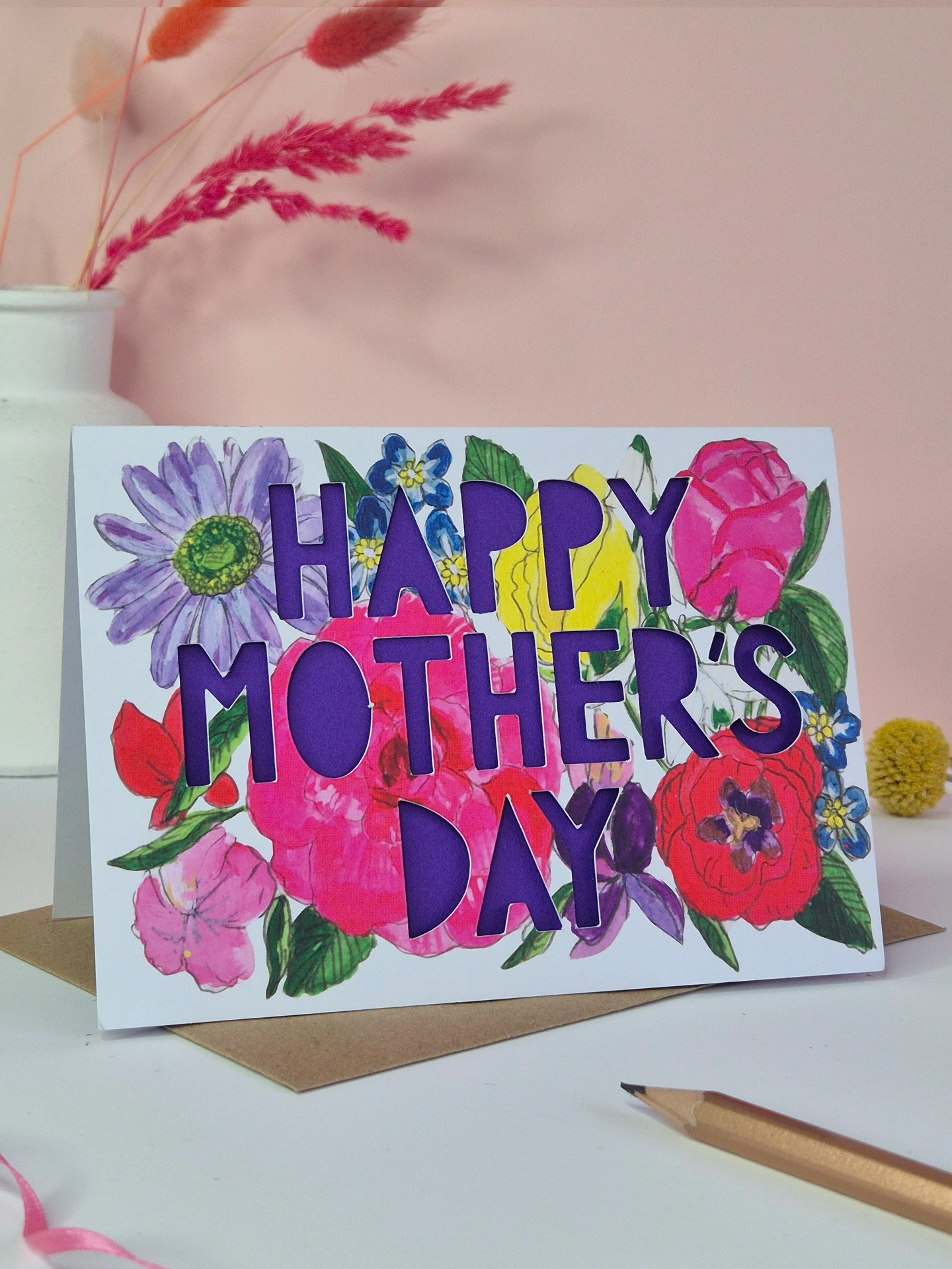 A bright floral paper cut card for Mum, Mom or Mummy on Mothers Day.
