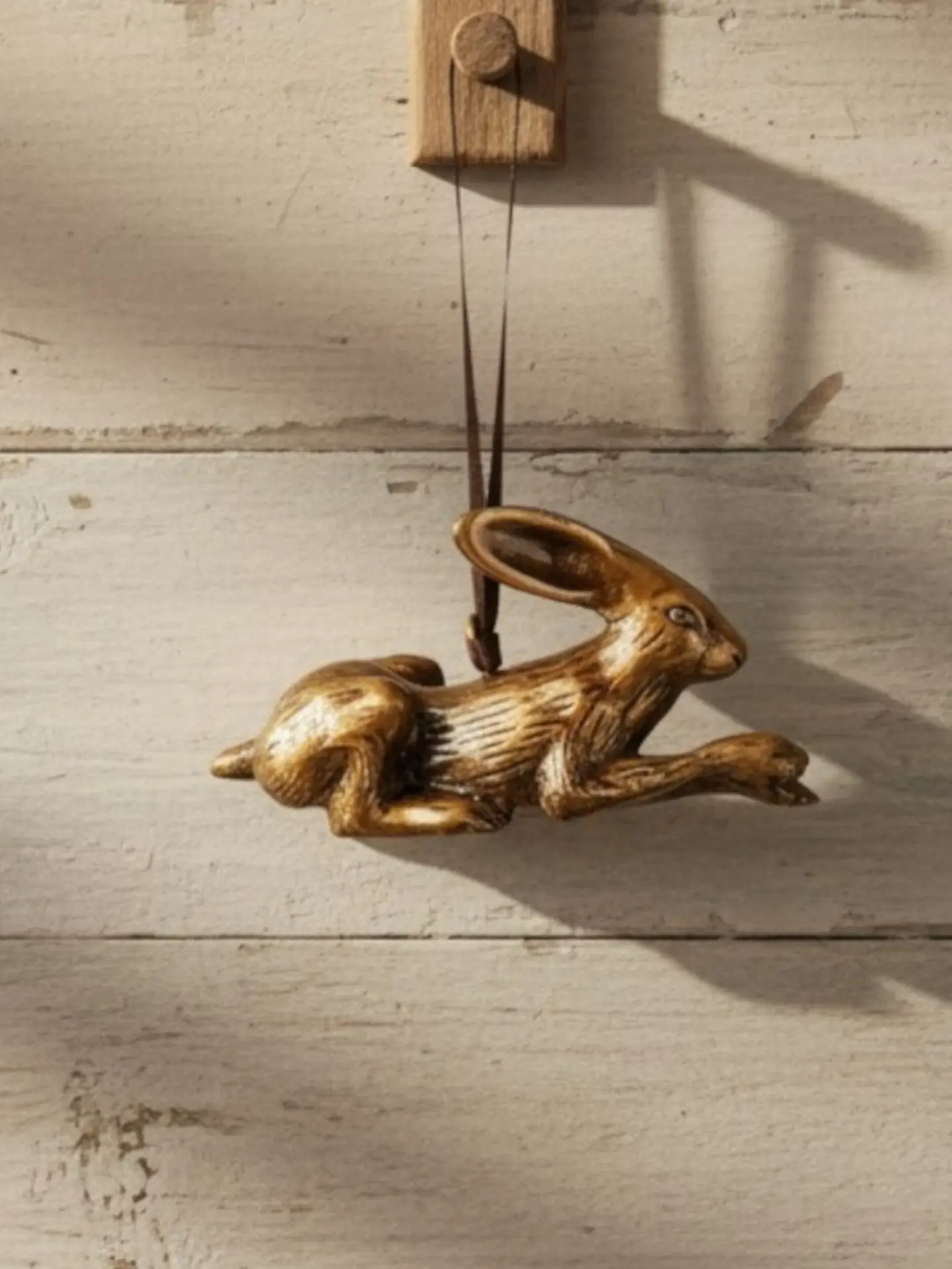 This handcrafted hare decoration is made from recycled metal - hang it on your Christmas tree, cupboard handle or a door. It is packaged in a linen pouch and is a thoughtful gift for nature lovers.