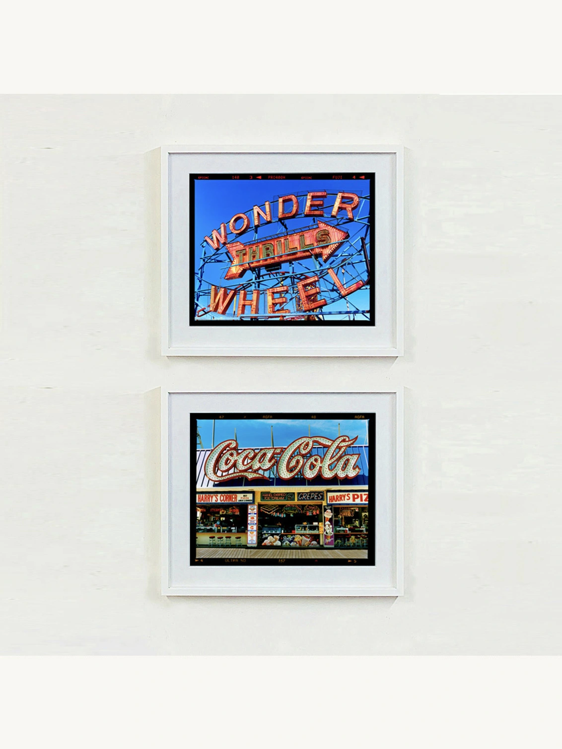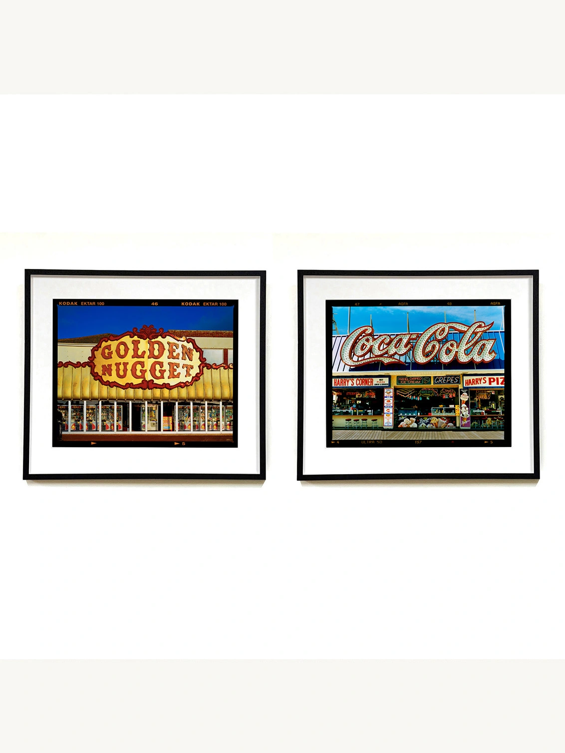 The artwork captures the many details of seaside favourites, lit up signs compete for attention dominated by the Coca-Cola sign in the sun against the blue sky. When photographing on the East Coast of America, Richard drew parallels of familiarity to the East Coast of England.