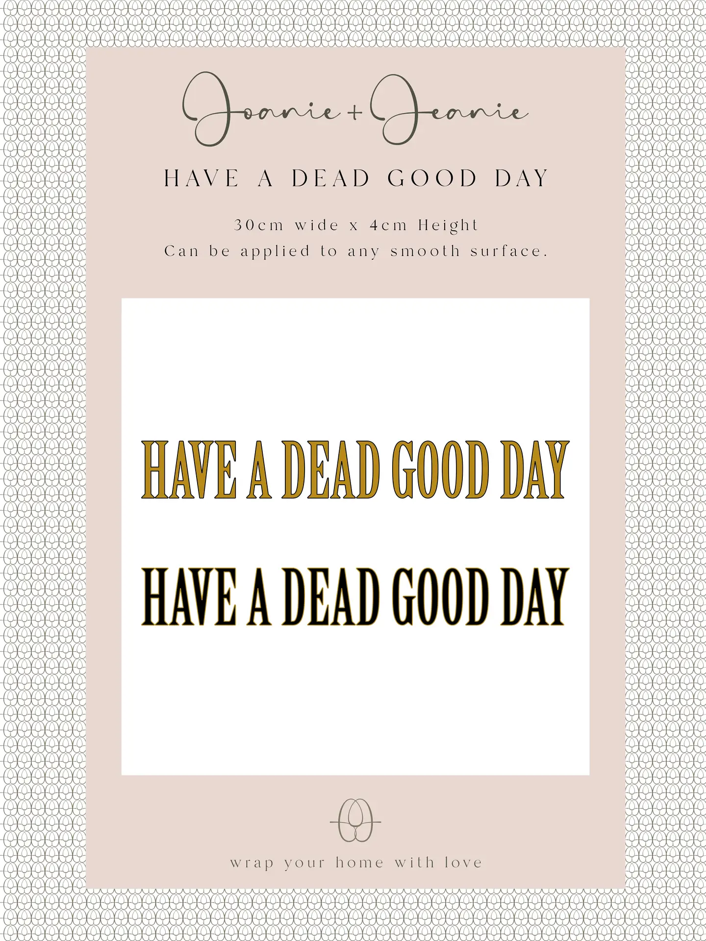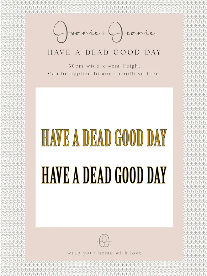 Brighten up your walls or mirrors with a playful twist of dark humour. Have a Dead Good Day sticker by Joanie and Jeanie is designed to bring a smile with its bold lettering and tongue-in-cheek charm. Easy to apply and remove, this self-adhesive decal works perfectly on smooth surfaces and leaves no marks behind.