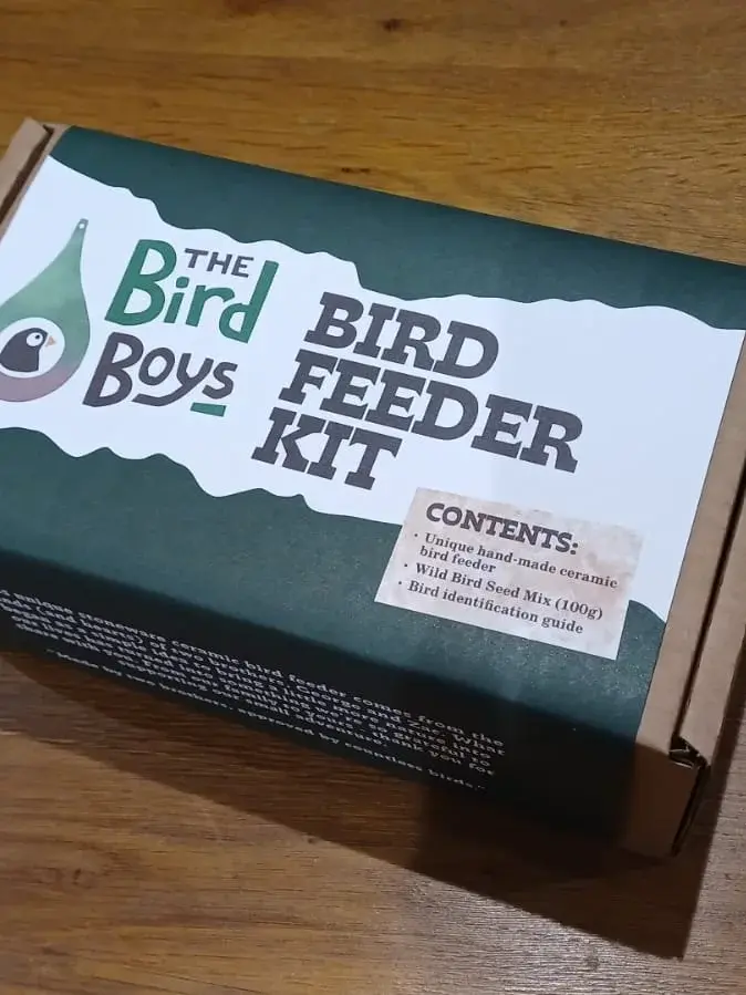 As seen on ITV ‘Be Your Own Boss’. Our bird feeders are available in two kits. The regular kit includes our heart bird feeder, a 'The Bird Boys' Common Guide to Garden Birds paired with beautifully illustrated birds, and a packet of our own blended bird seed mix—perfect for anyone who enjoys a quiet moment in the garden and wants to deepen their connection with local wildlife.