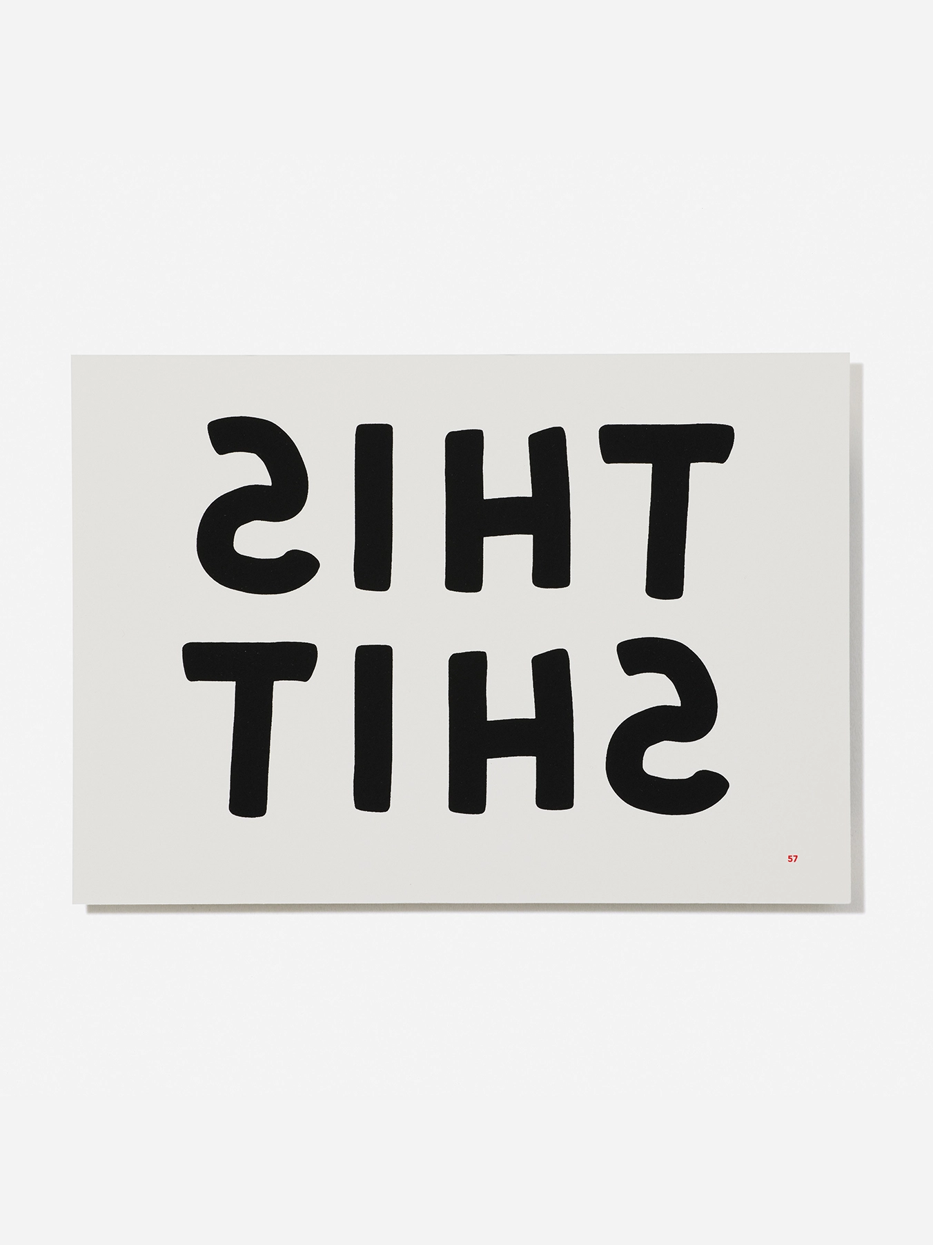 A limited edition of 57, HITS is a hand-made screen print created with water-based black and red ink on 410gsm. John Purcell Somerset Satin paper.