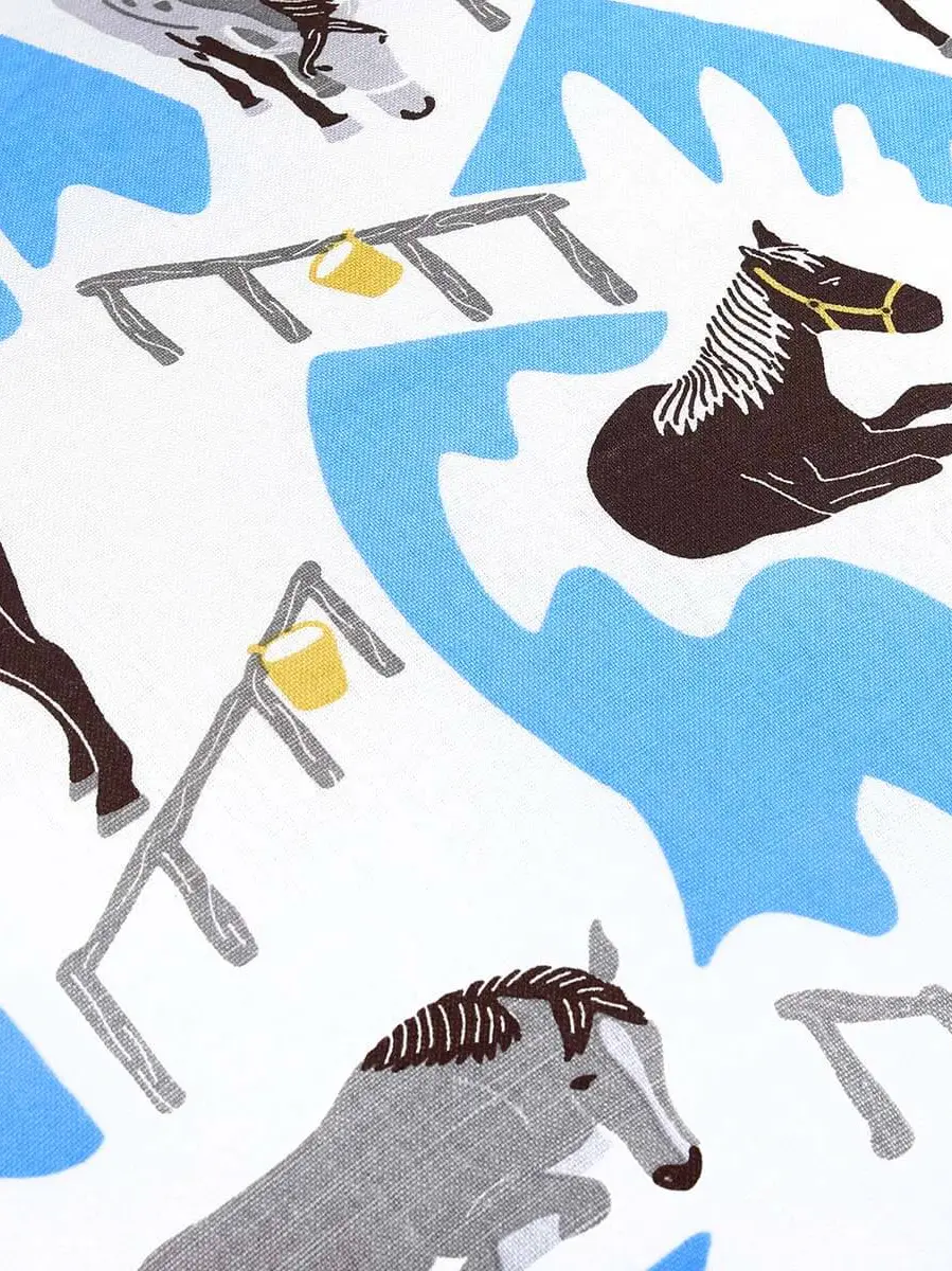 Hand screen printed cotton linen. Both the duvet cover and pillowcase feature the Horse Ranch print on both sides.