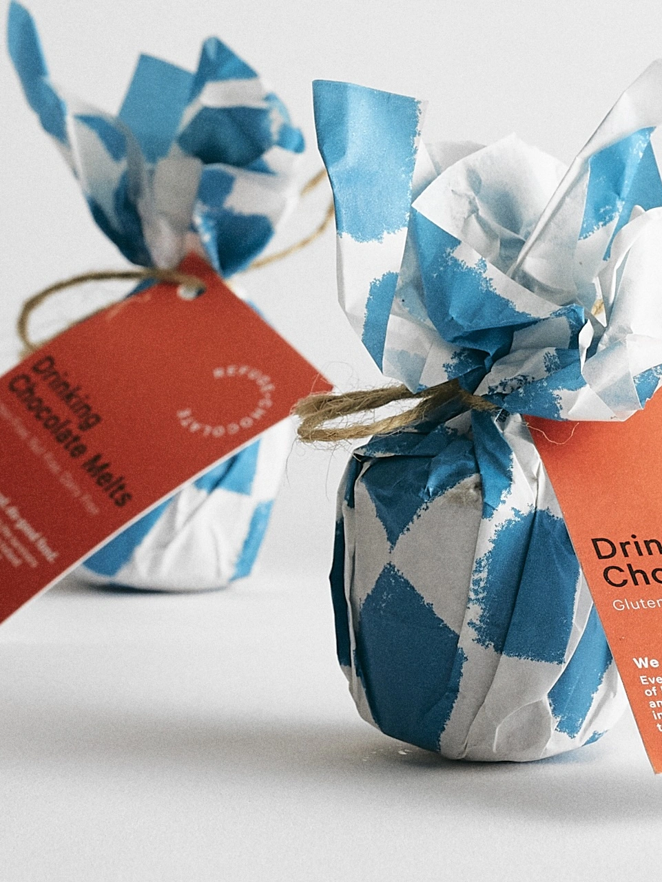 2 x solid chocolate and sugar half round shapes. Add liquid, heat and enjoy. 2 servings per pack. Give a hug in a mug to your favourite human or yourself. Luxurious drinking chocolate; the perfect chocolate gift. Think of our ethical Drinking Chocolate Melts like a chocolate stirrer but without the stick (we like to keep things as waste free as possible around here). They can also be compared to hot chocolate bombs/ bombes but with our gourmet dark drinking chocolate chocolate Melts you get a heck of a lot more chocolate for your dollar.