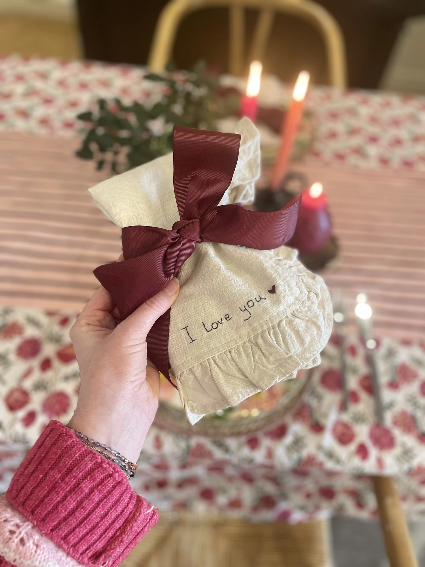 Perfect for family meals, slow Sunday breakfasts, romantic dinners, or as a heartfelt gift, these napkins bring warmth, connection, and intention to the table. Whether given for a birthday, Valentines Gift, anniversary, wedding, or simply just because, they are a reminder that love lives in the smallest details.