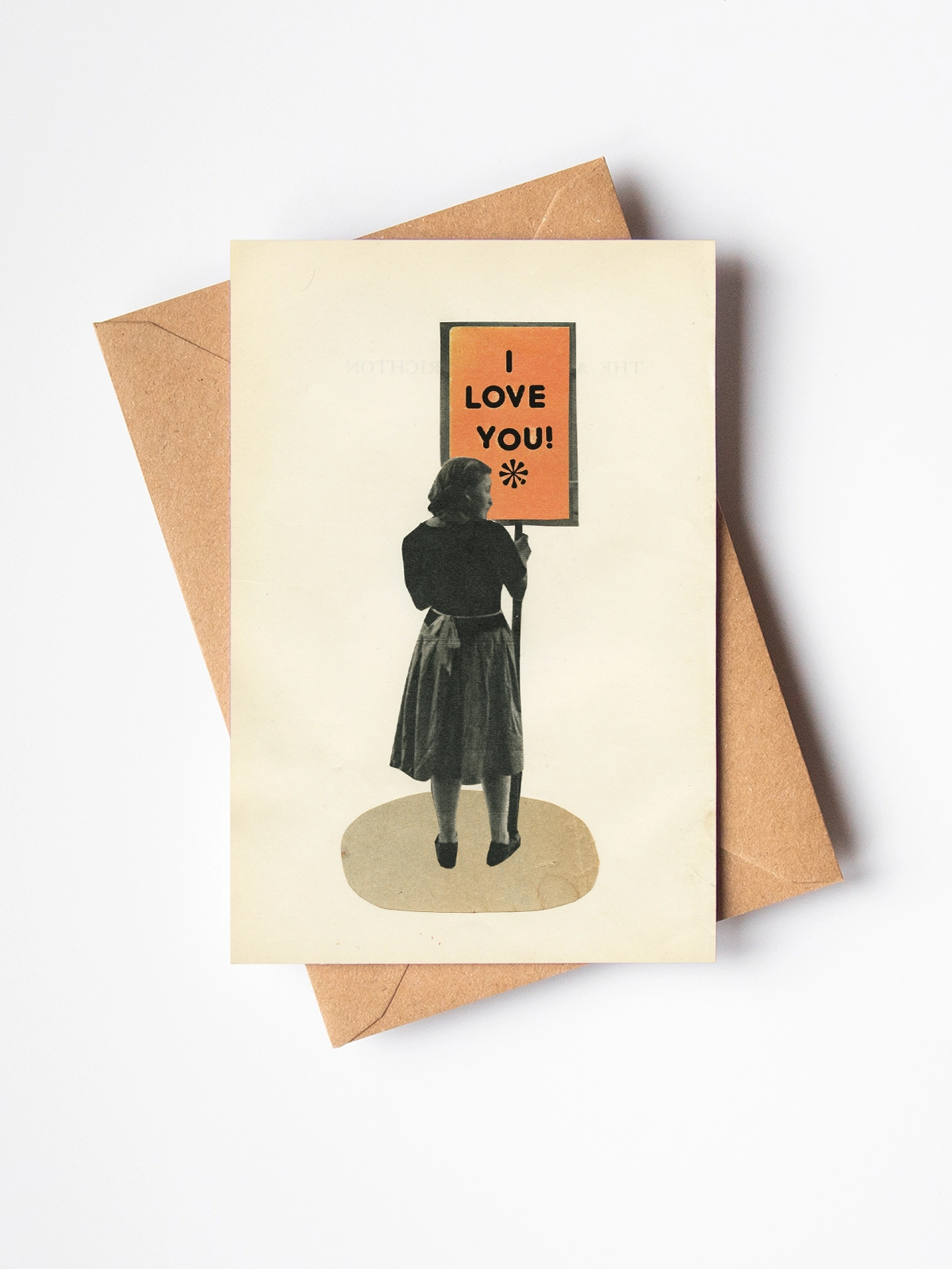 She holds a placard that reads "I Love You", declaring her love for all to see.