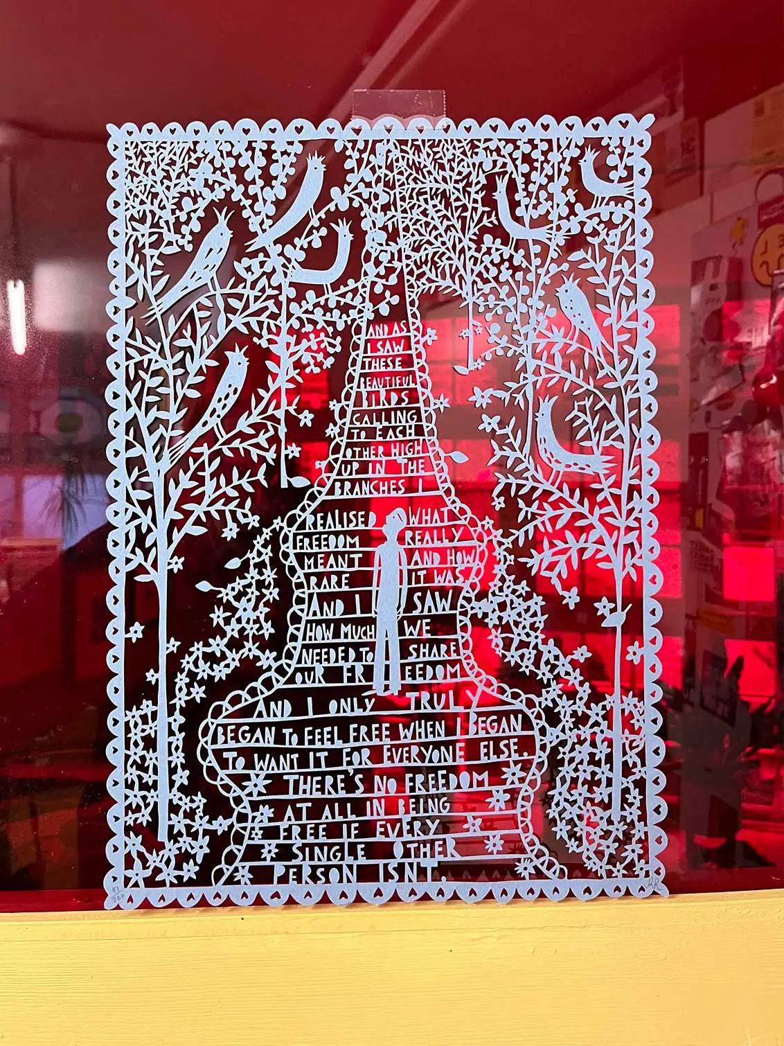 'I Realised What Freedom Really Meant' Blue Lasercut