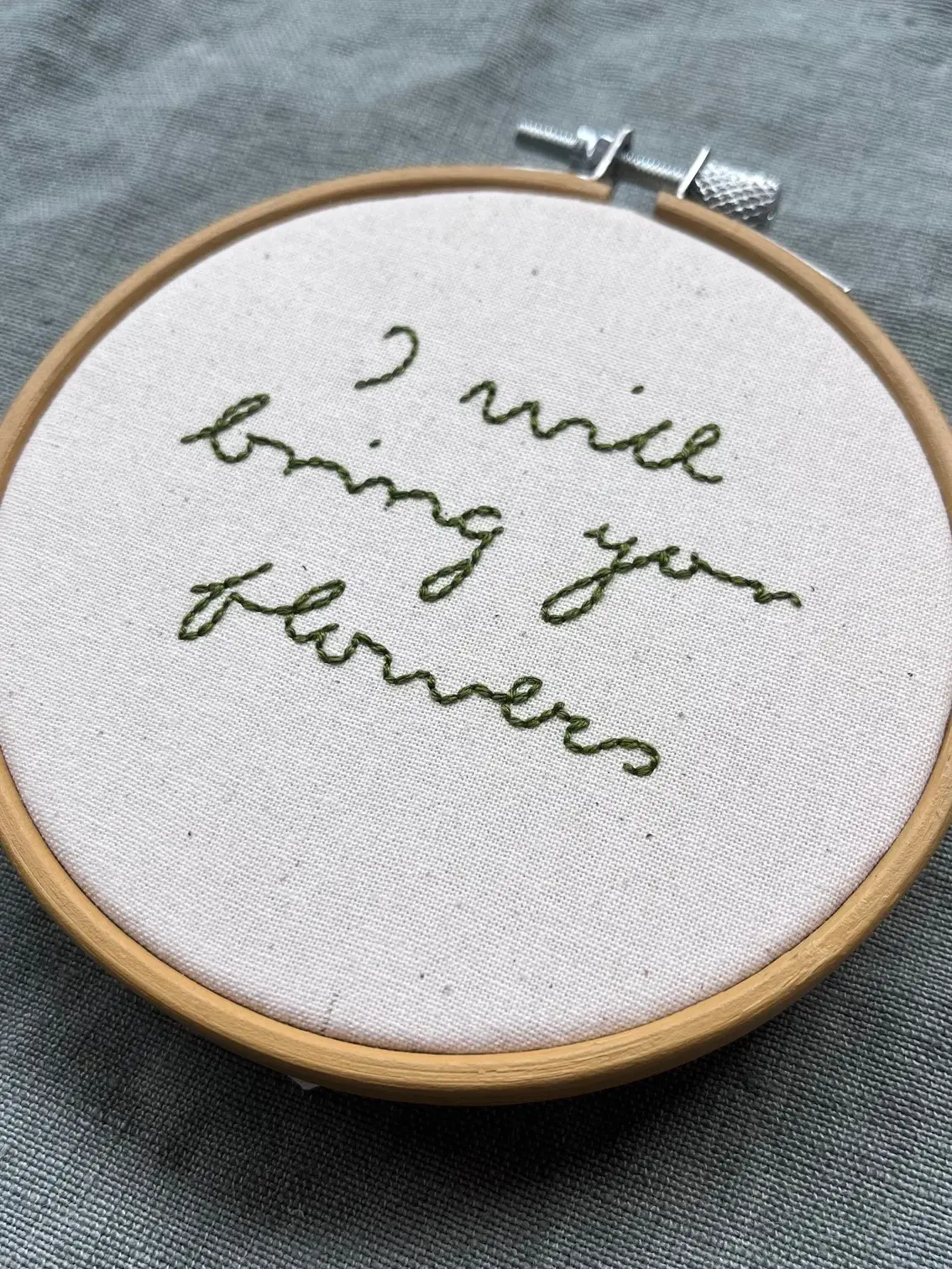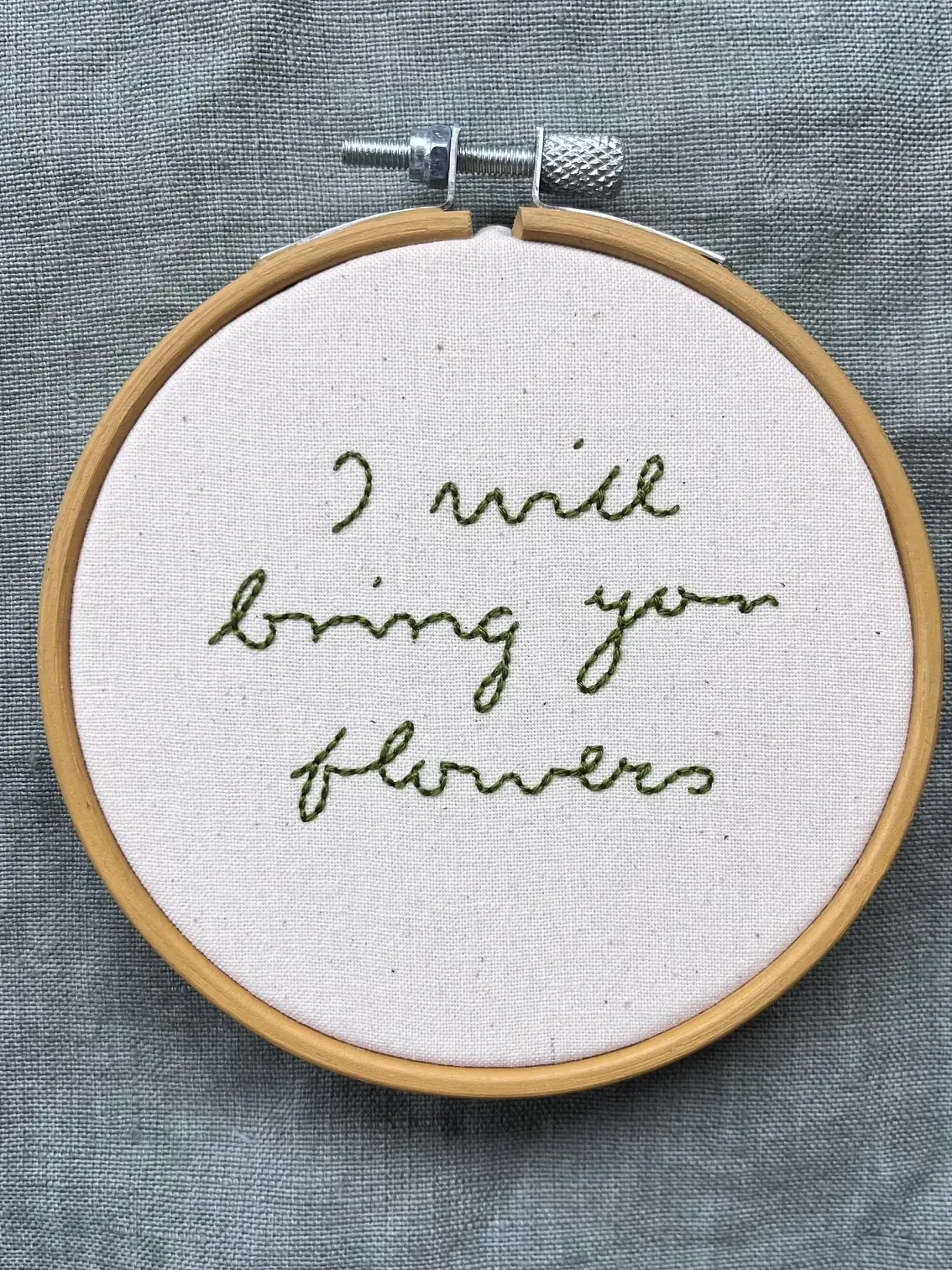 'I Will Bring You Flowers' Hand Embroidered Hoop Artwork
