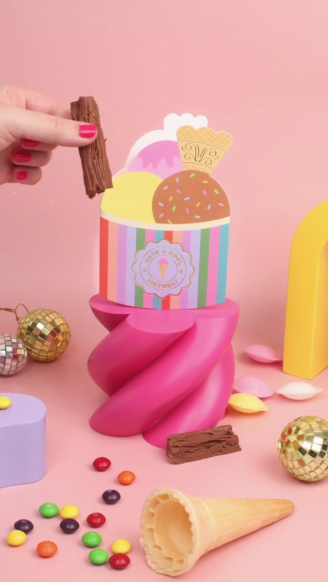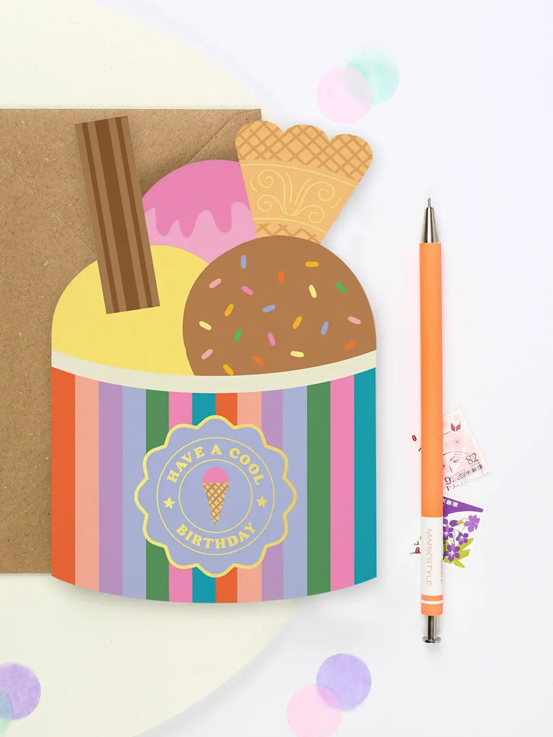 The gold foil details make the design extra special with a logo style birthday message that reads ‘have a cool birthday’ Crafted from high-quality, responsibly sourced card, it's an excellent choice for anyone who loves playful, dessert-themed designs.