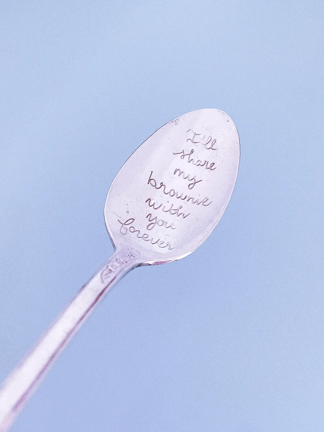 Hand-engraved with the words “I'll share my brownie with you forever ” on the spoon face.
