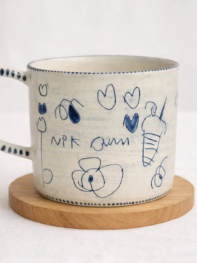 Children’s drawings fill our drawers and boxes until there’s no space left, yet we can never bring ourselves to let go of the ones we love most. Illustrated by Little Hands is a bespoke ceramic commission preserving children’s drawings on handmade forms, transforming fleeting moments of childhood into lasting heirlooms.