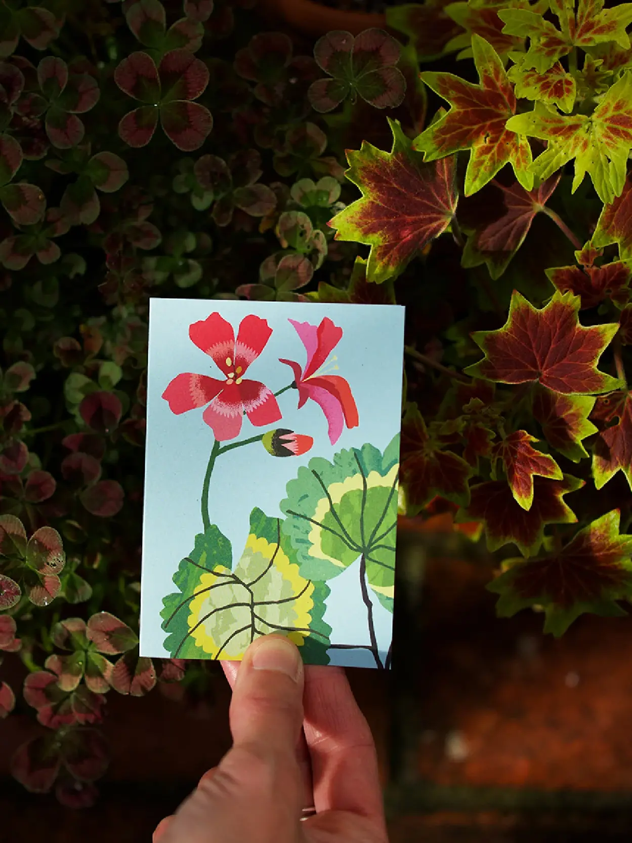 Illustrated Geranium Mini Cards (Pack Of 8)