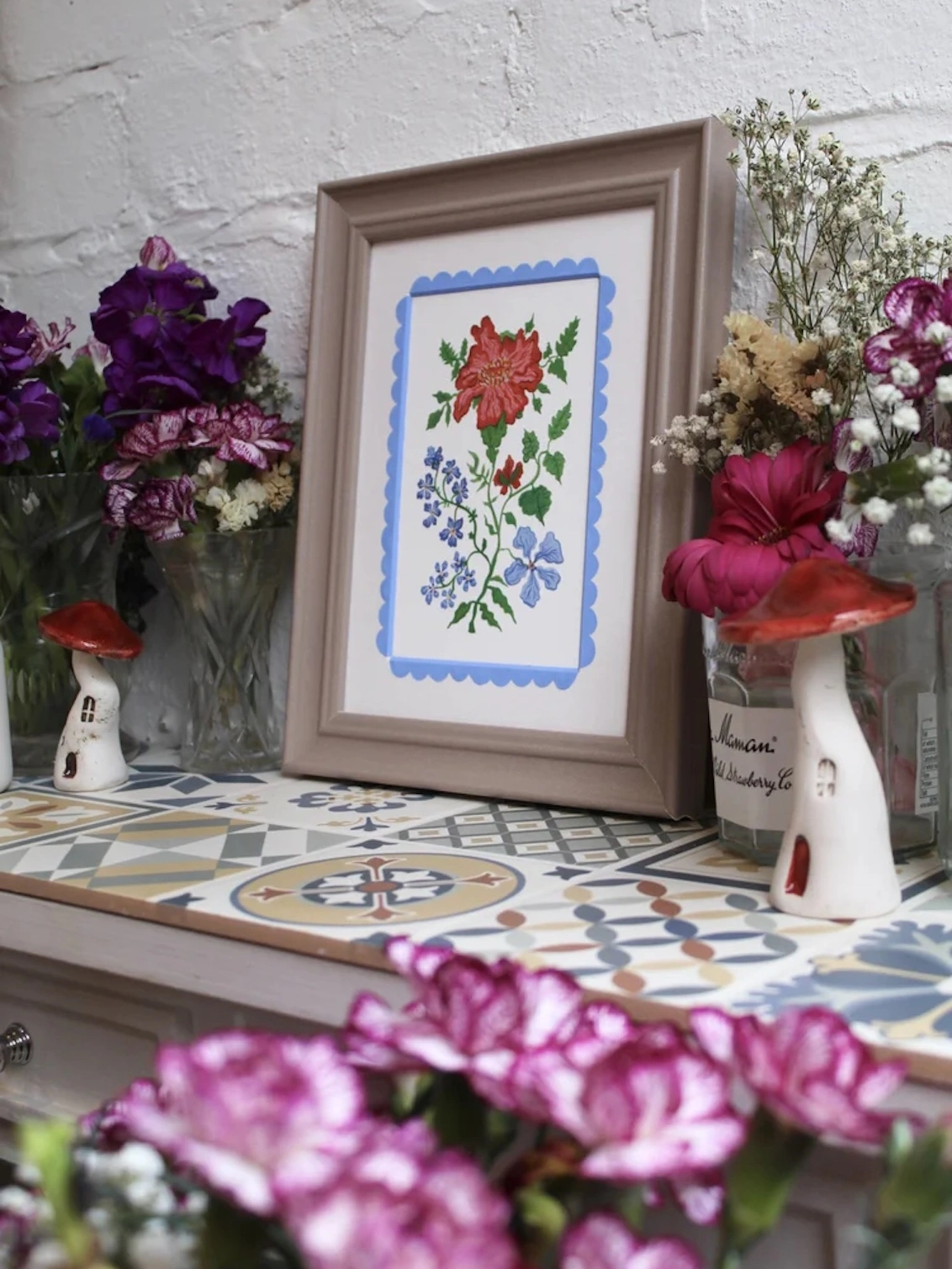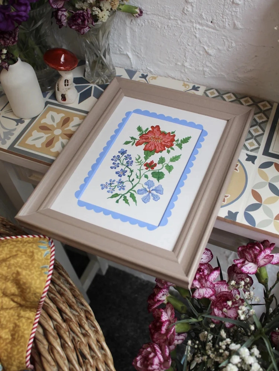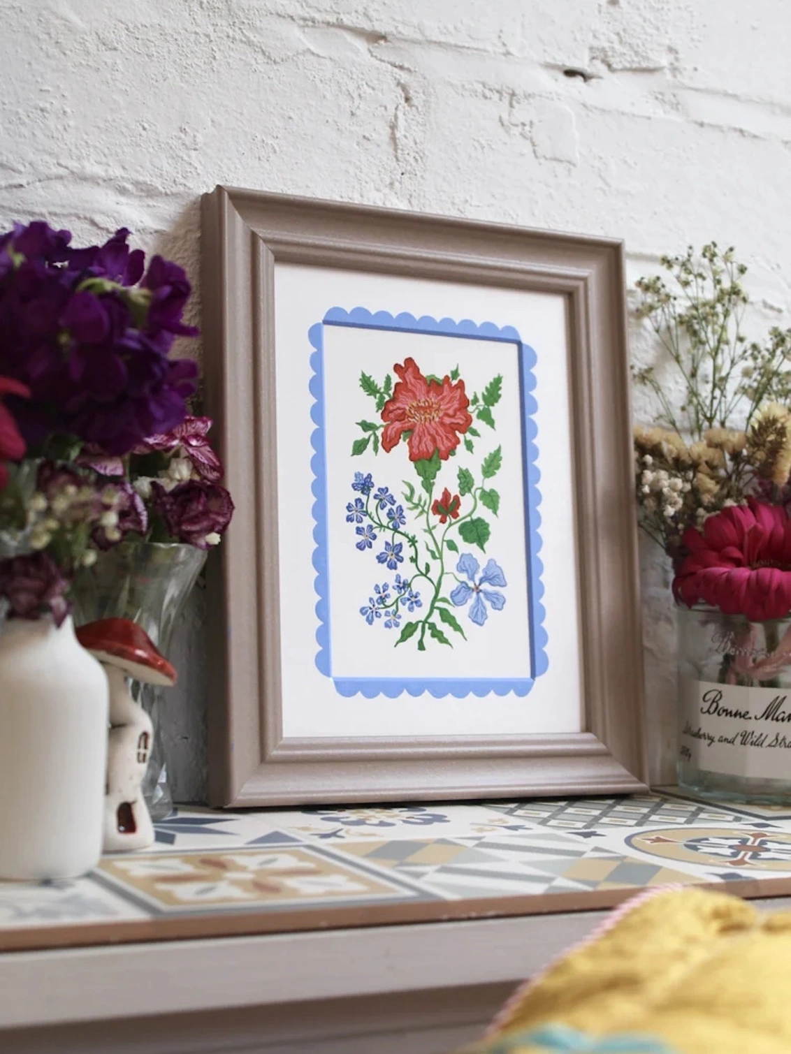 A high-quality art print, inspired by the beauty of botanicals, and their intricate details, framed in a signature hand-painted scallop mount.