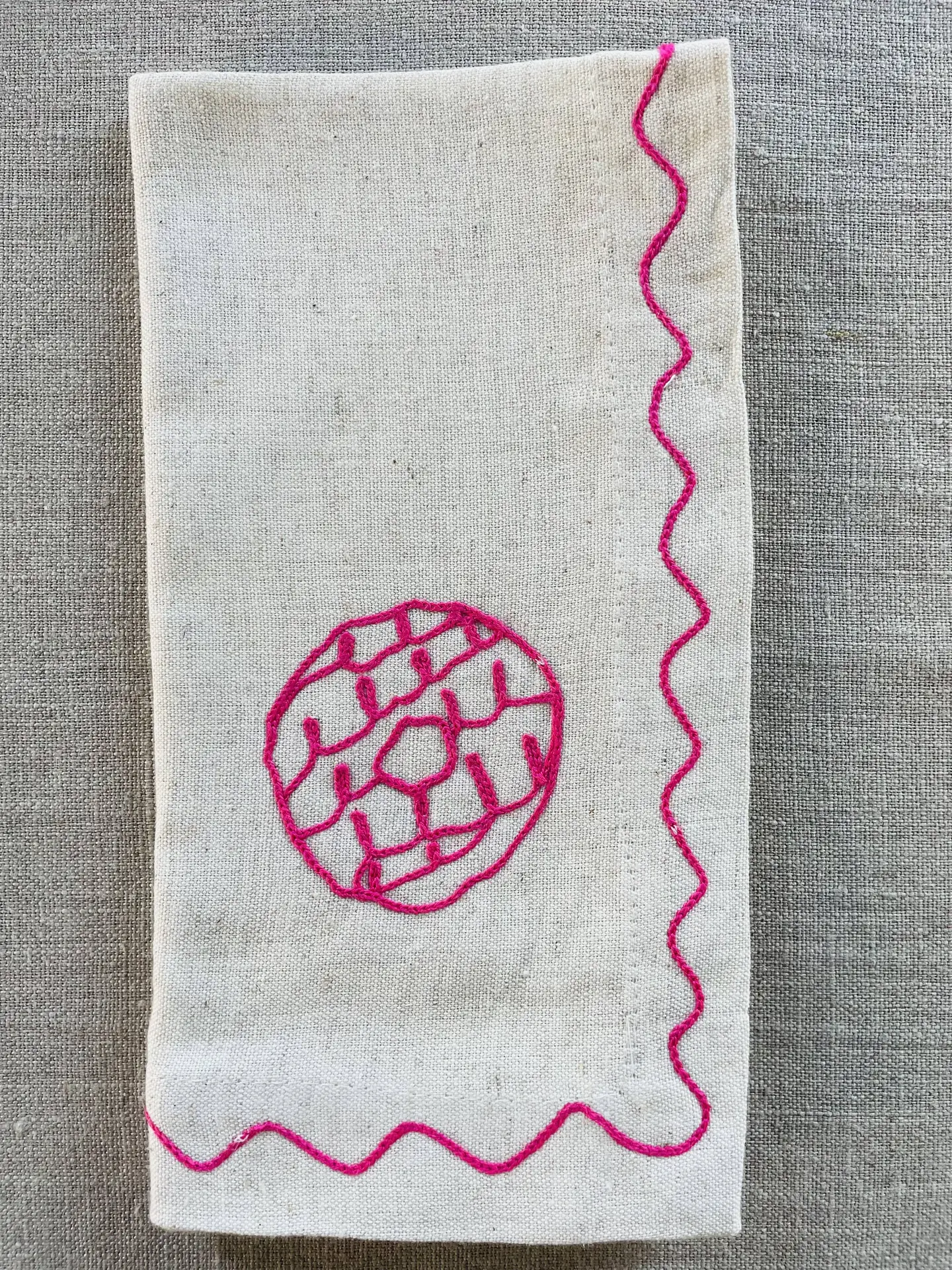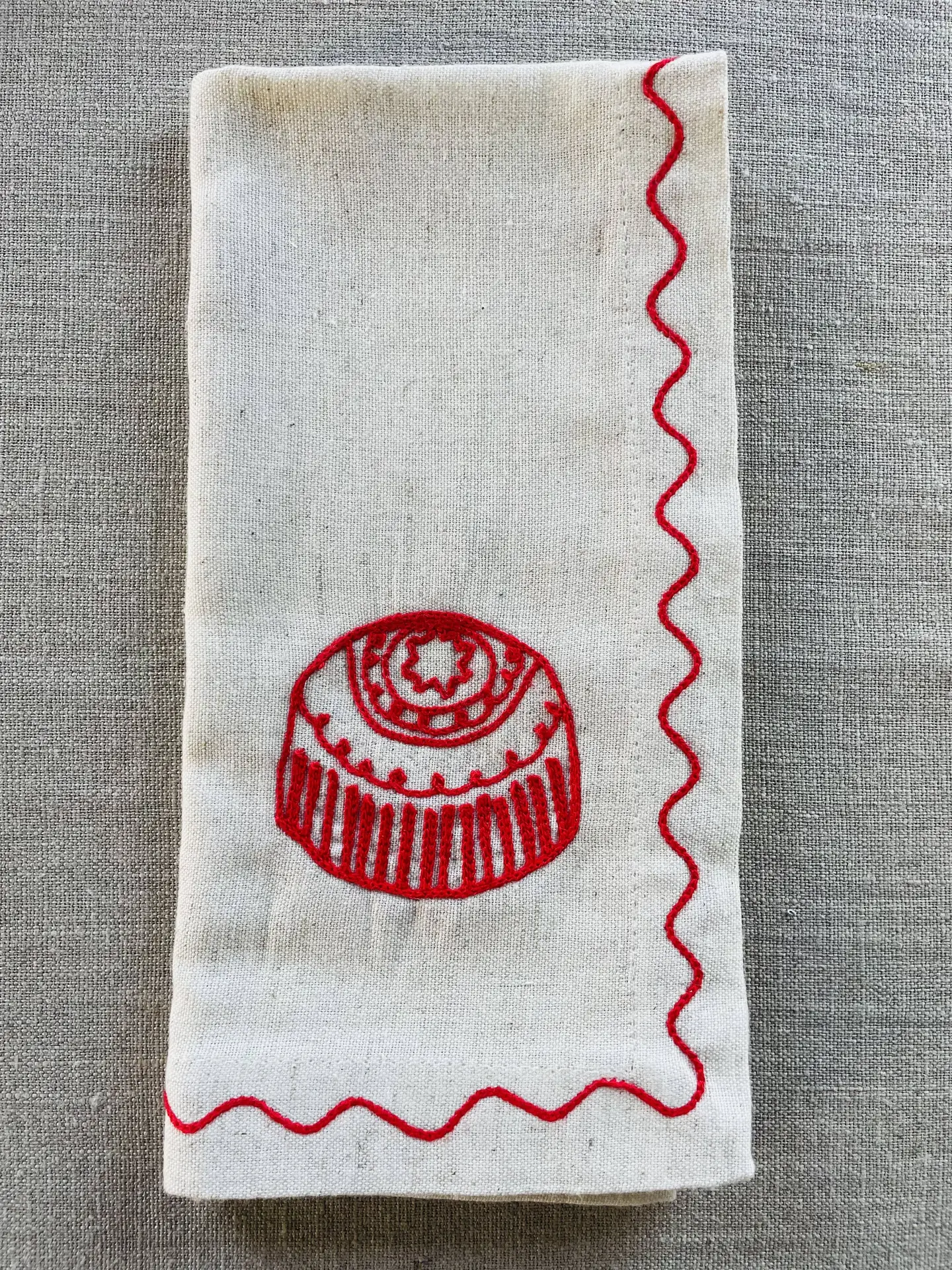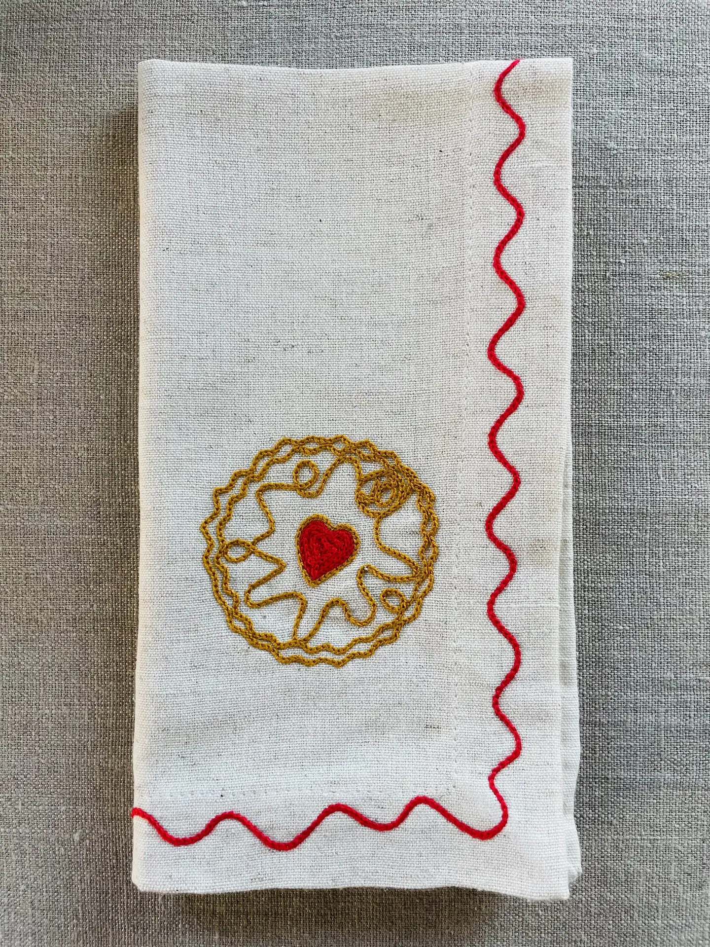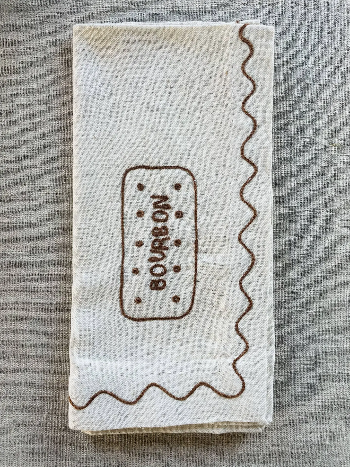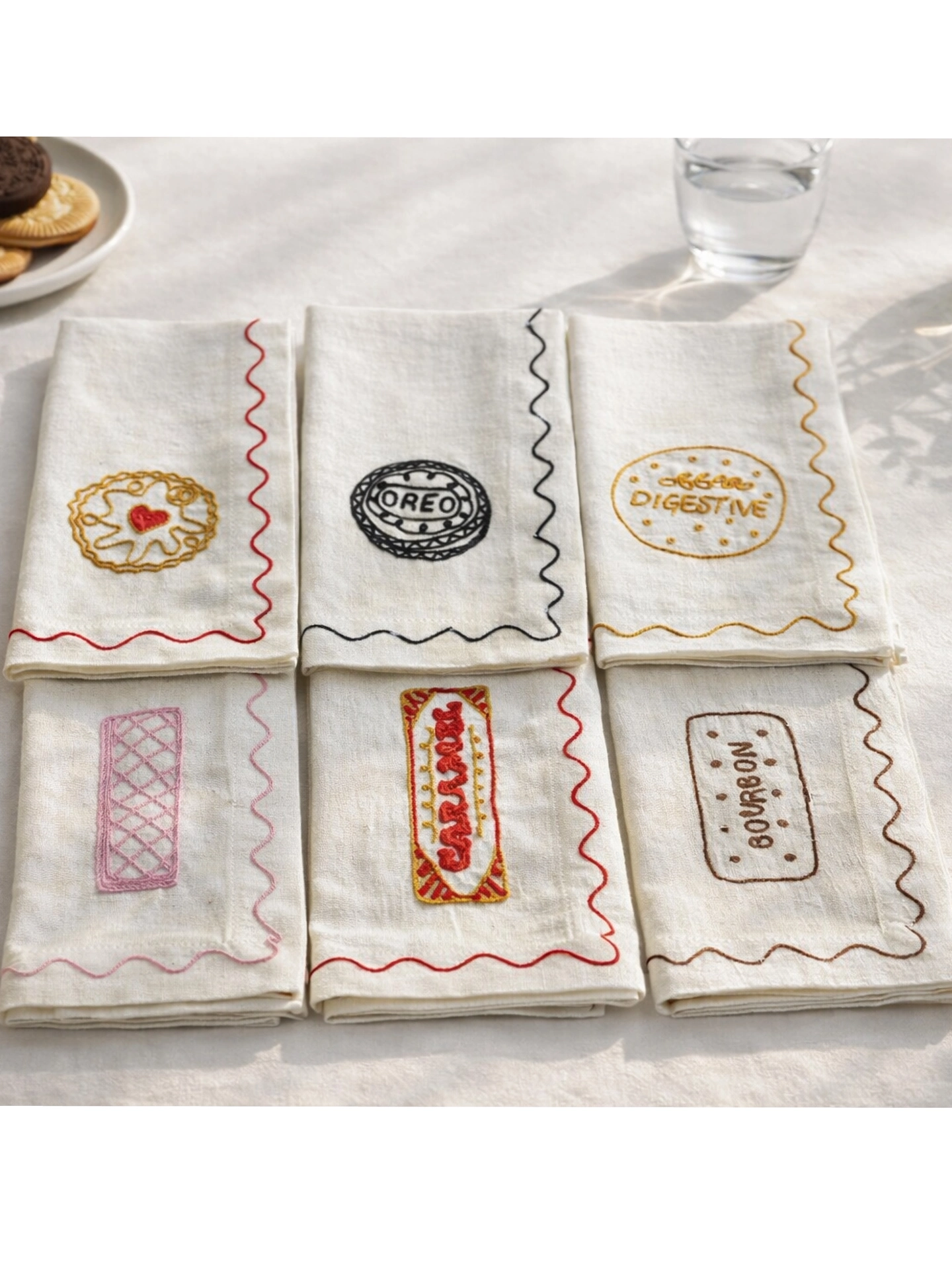 Create your own “biscuit tin” with our beautifully embroidered linen napkins a playful nod to everyone’s favourite teatime treats.