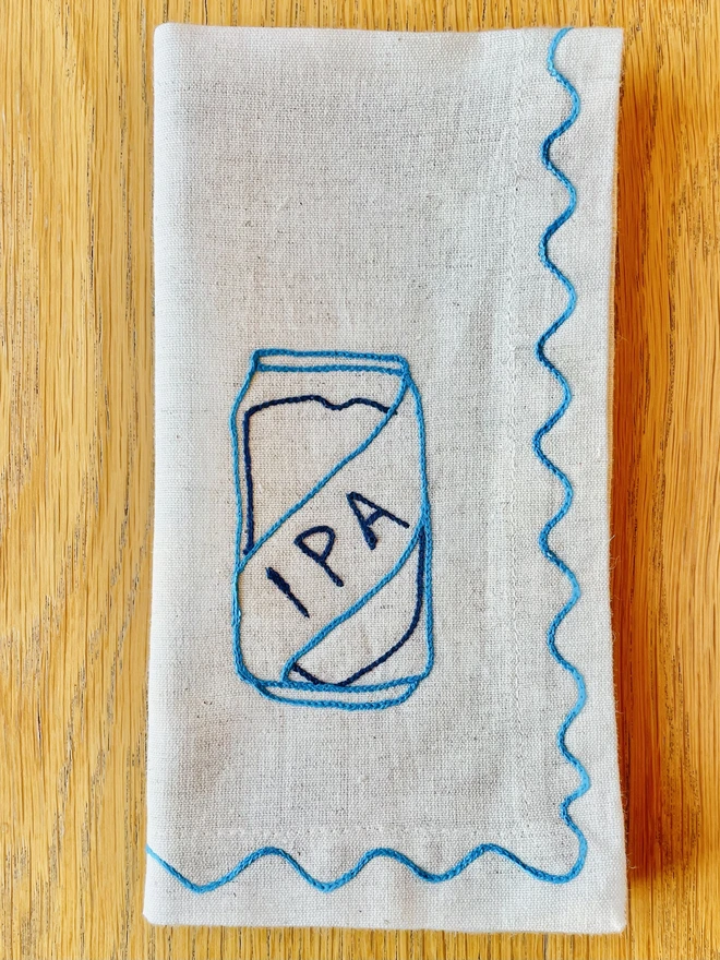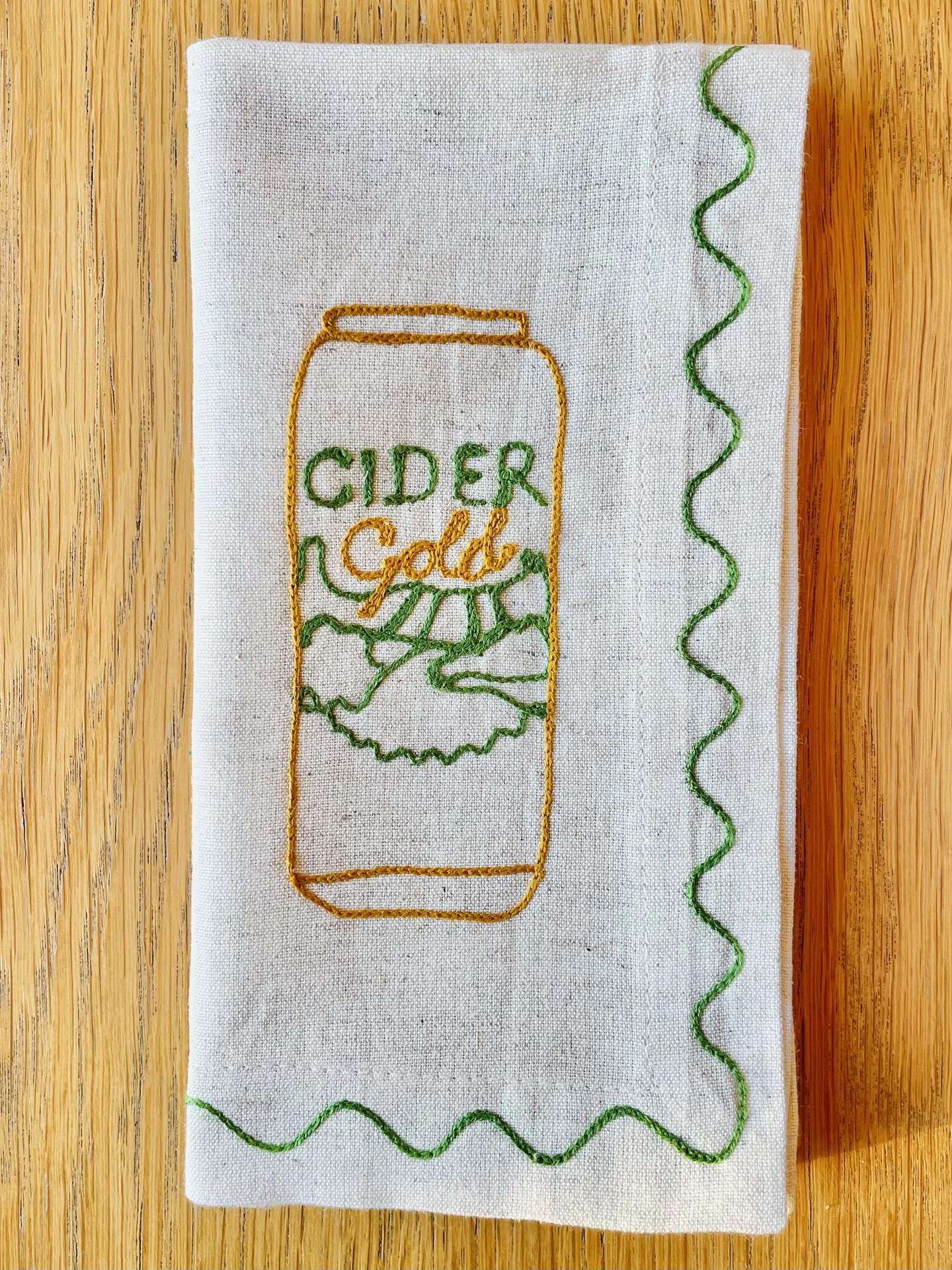 Individual cotton linen napkins with embroidered cocktails, these can be personalised.