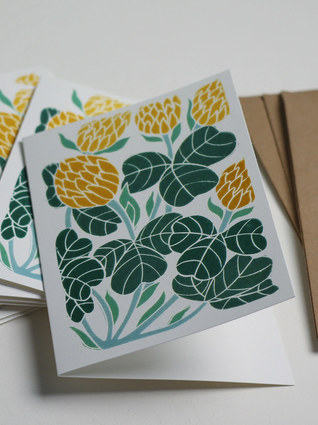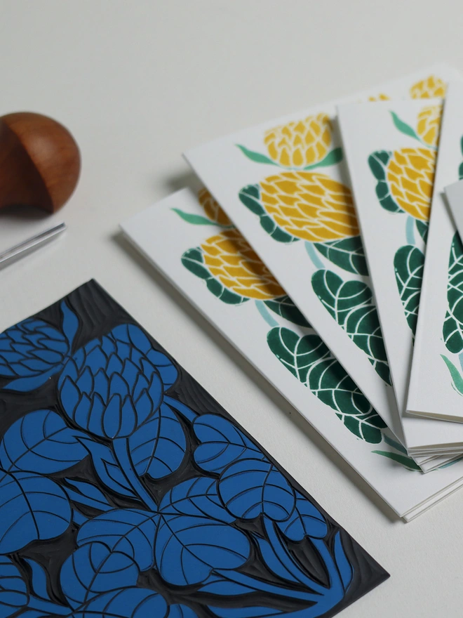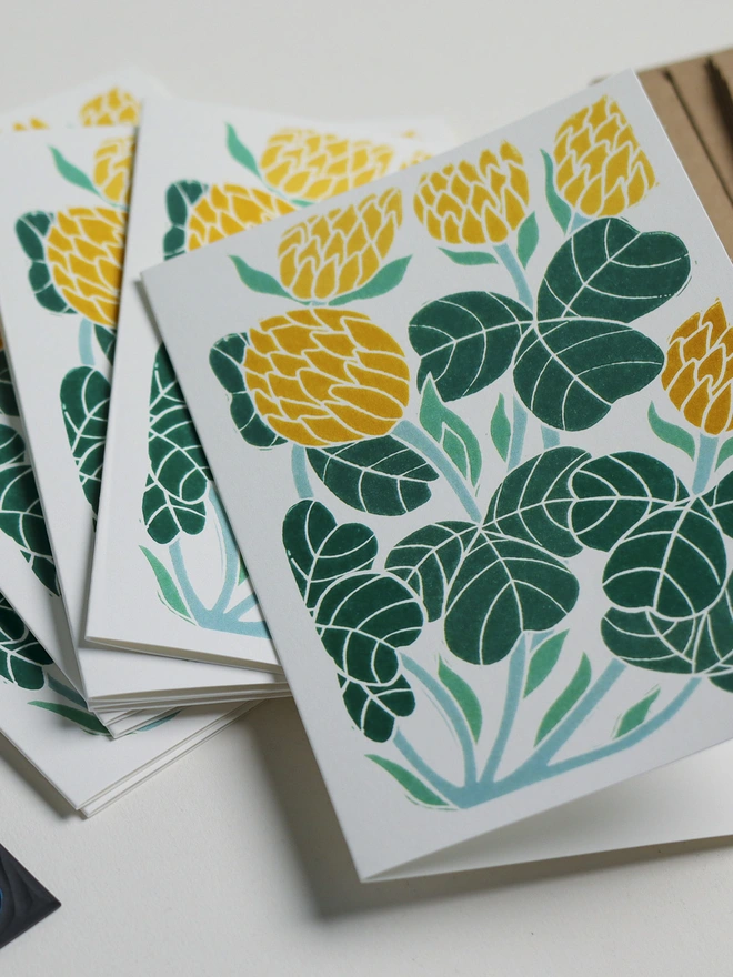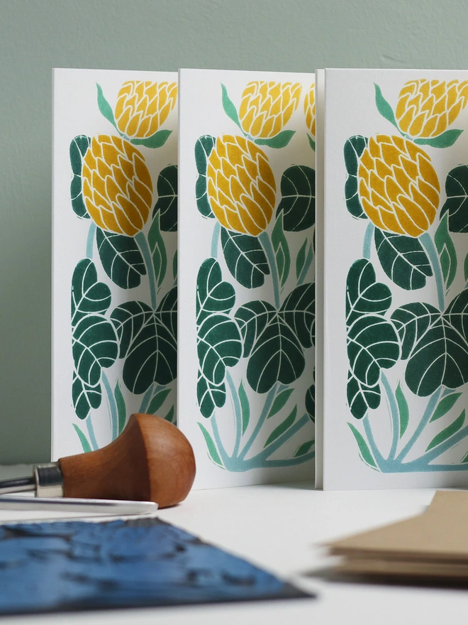These botanical notecards are perfect for heartfelt correspondence, thank you notes, or elegant invitations. Each design begins as a hand-carved linocut print from my Norfolk studio - traditional relief printmaking meeting contemporary colour, created with real carving tools, real linoleum, and real patience.