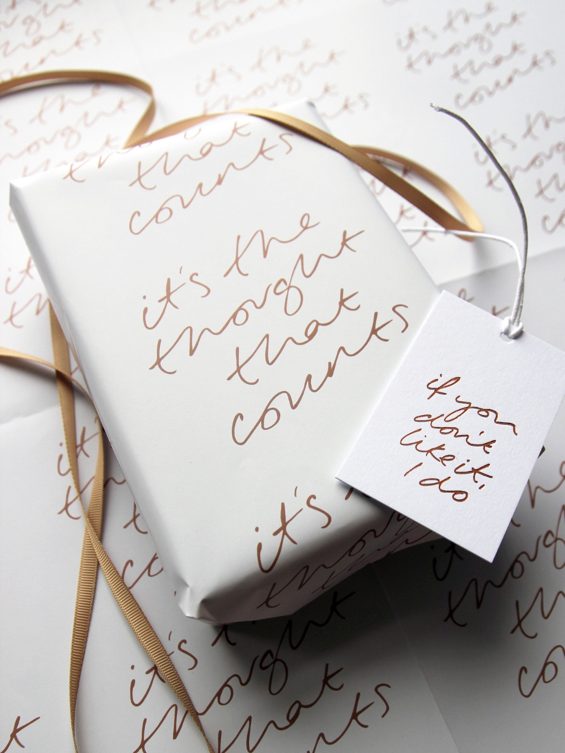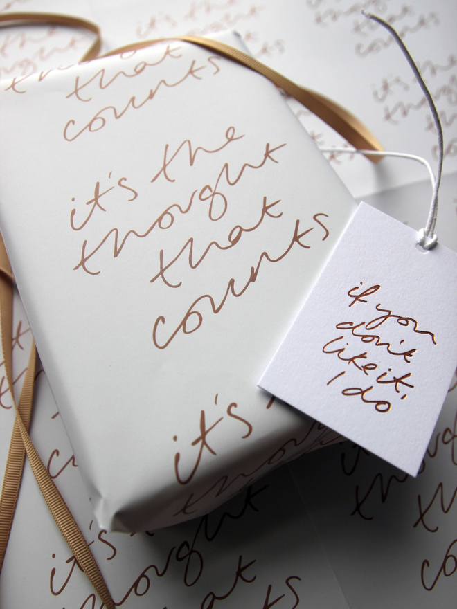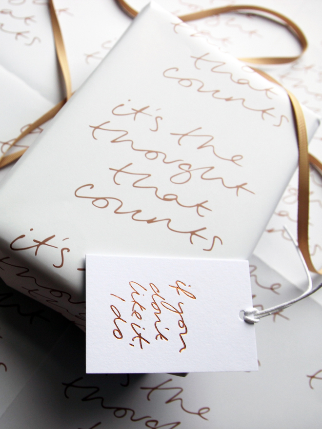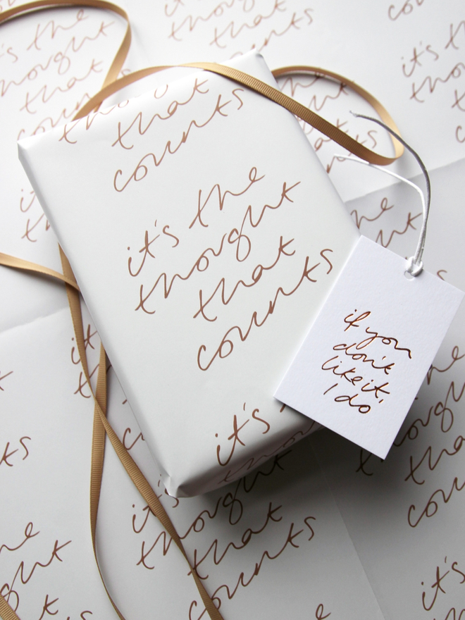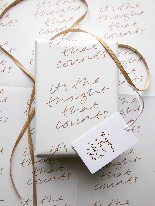 Not every gift is a showstopper, but hey - it’s the thought that counts. This wrapping paper does the talking for you, with a cheeky phrase in our signature handwriting. Wrapping paper perfect for last-minute presents, Secret Santa swaps, or anything slig...