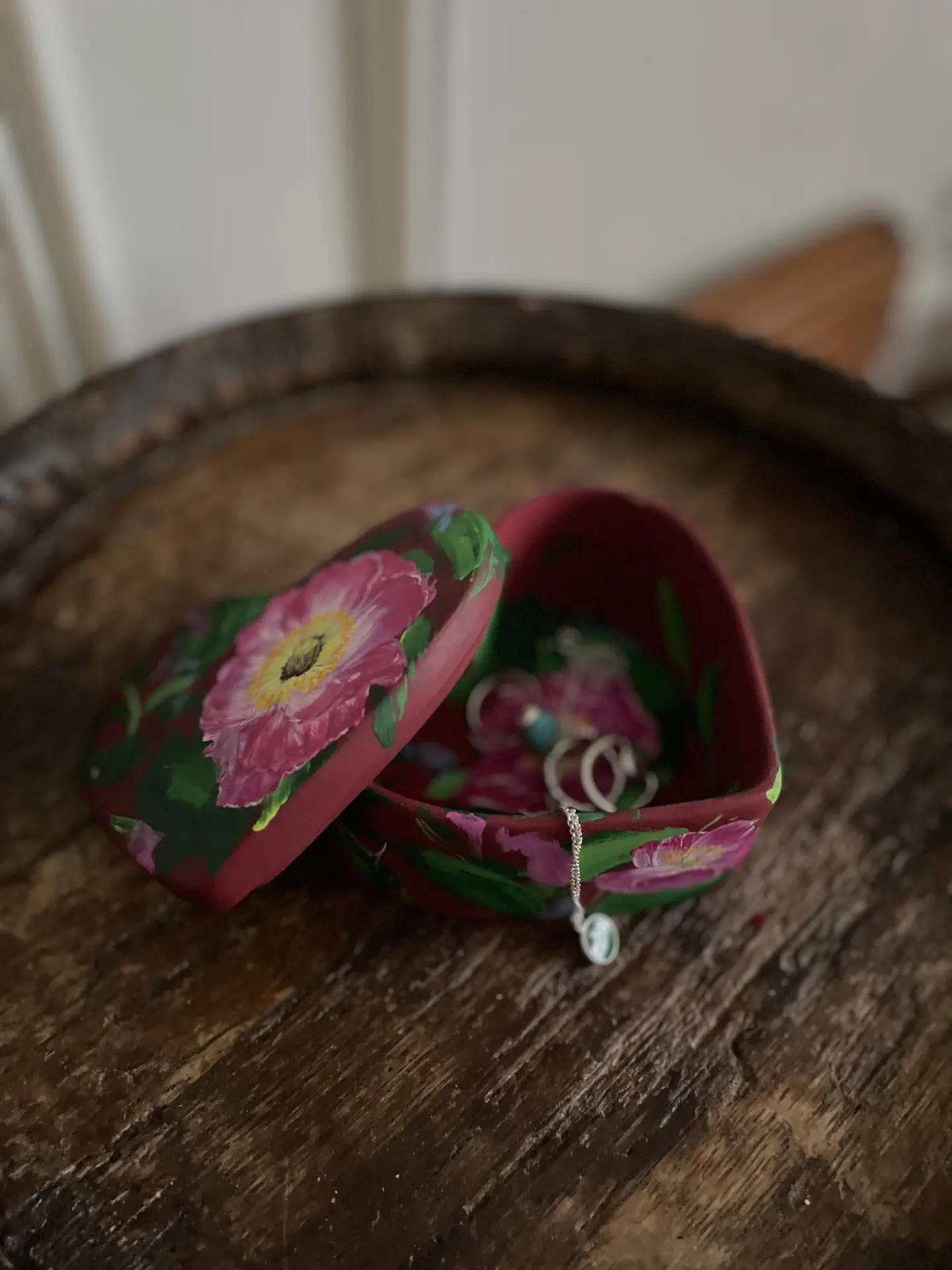 Kate‘s unique one of a kind hand painted ceramic heart shaped boxes, inspired by romantic whimsy florals, will add the perfect artisan touch to your loved ones home, designed to be treasured as a collectable heirloom keepsake.