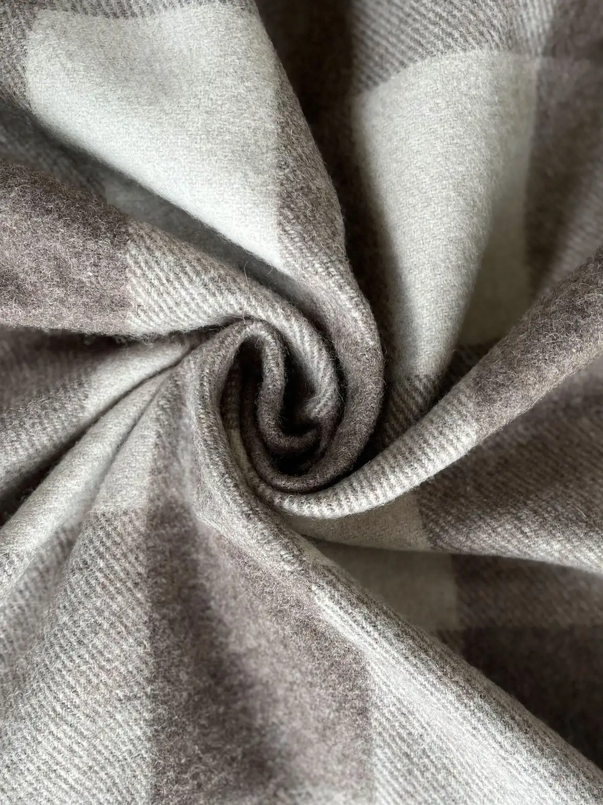 Jacob Recycled Wool Blanket, where soothing beige and cream shades unite in a contemporary checkered design, redefining home aesthetics. Made from recycled wool, it's a testament to innovation in eco-conscious living. Its modern aesthetic seamlessly complements any decor, bringing warmth and style to your space. Embrace the fusion of tradition and modernity with Jacob, a blanket that not only adds comfort but also speaks volumes about your earthy, ethical, and passionate values. Elevate your home with purposeful elegance.