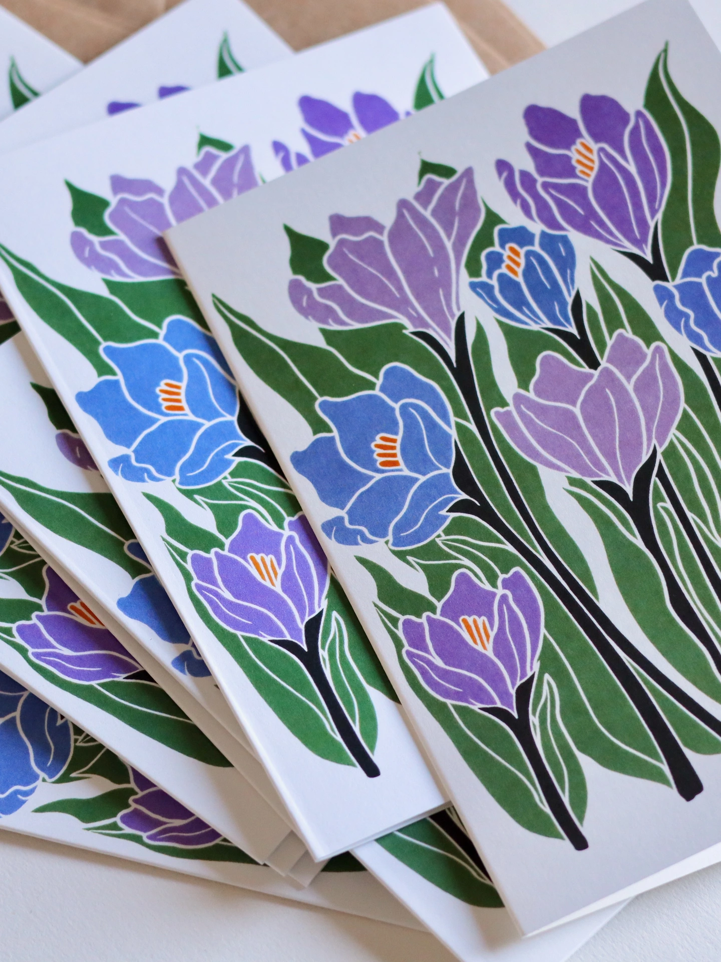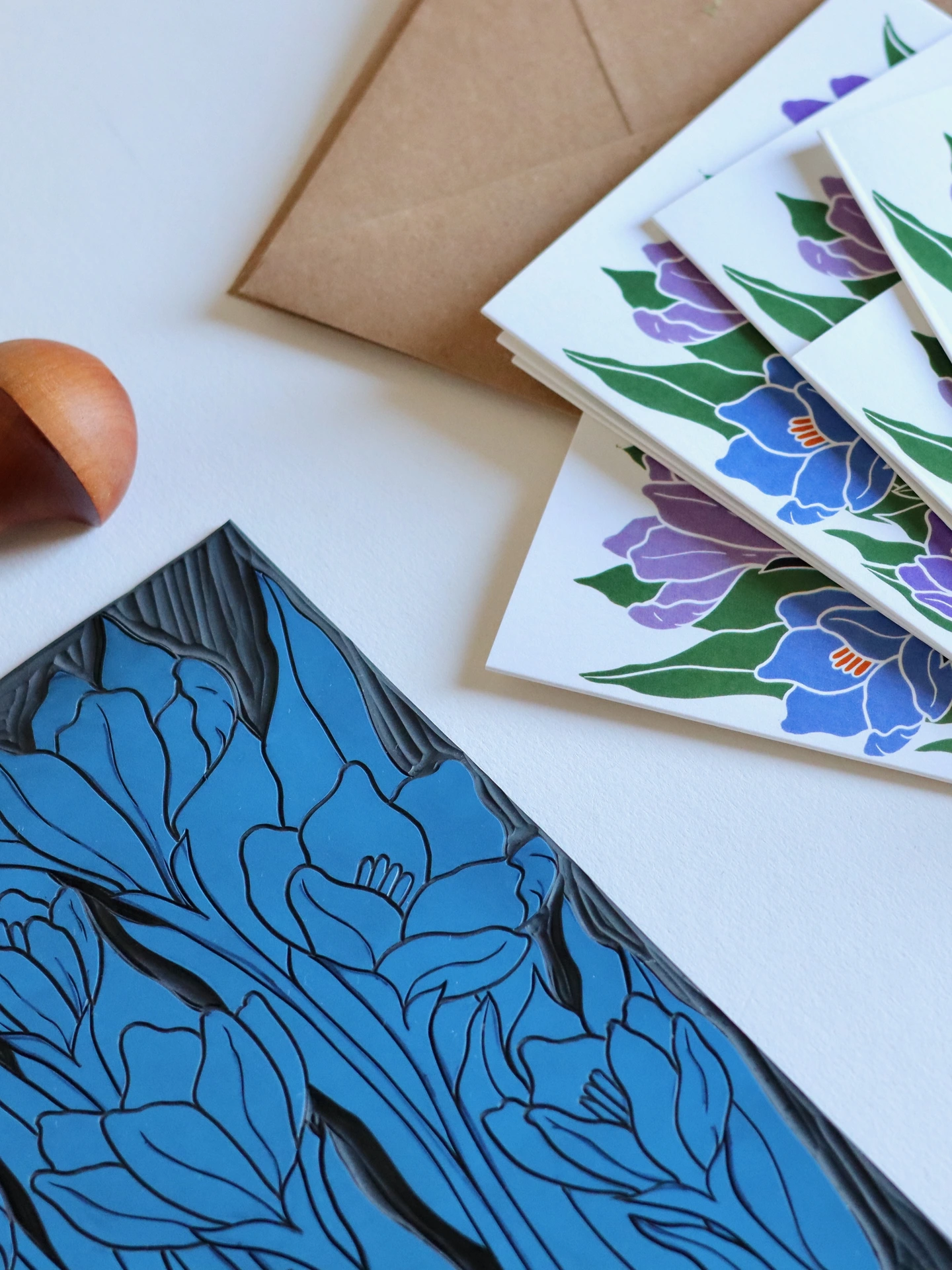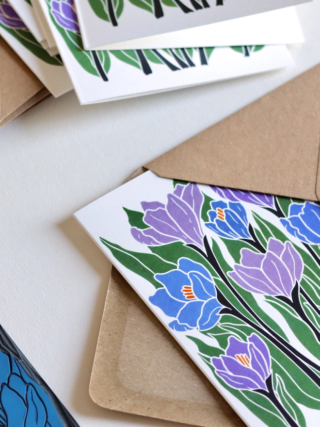 These botanical notecards are perfect for heartfelt correspondence, thank you notes, or elegant invitations. Each design begins as a hand-carved linocut print from my Norfolk studio - traditional relief printmaking meeting contemporary colour, created with real carving tools, real linoleum, and real patience.