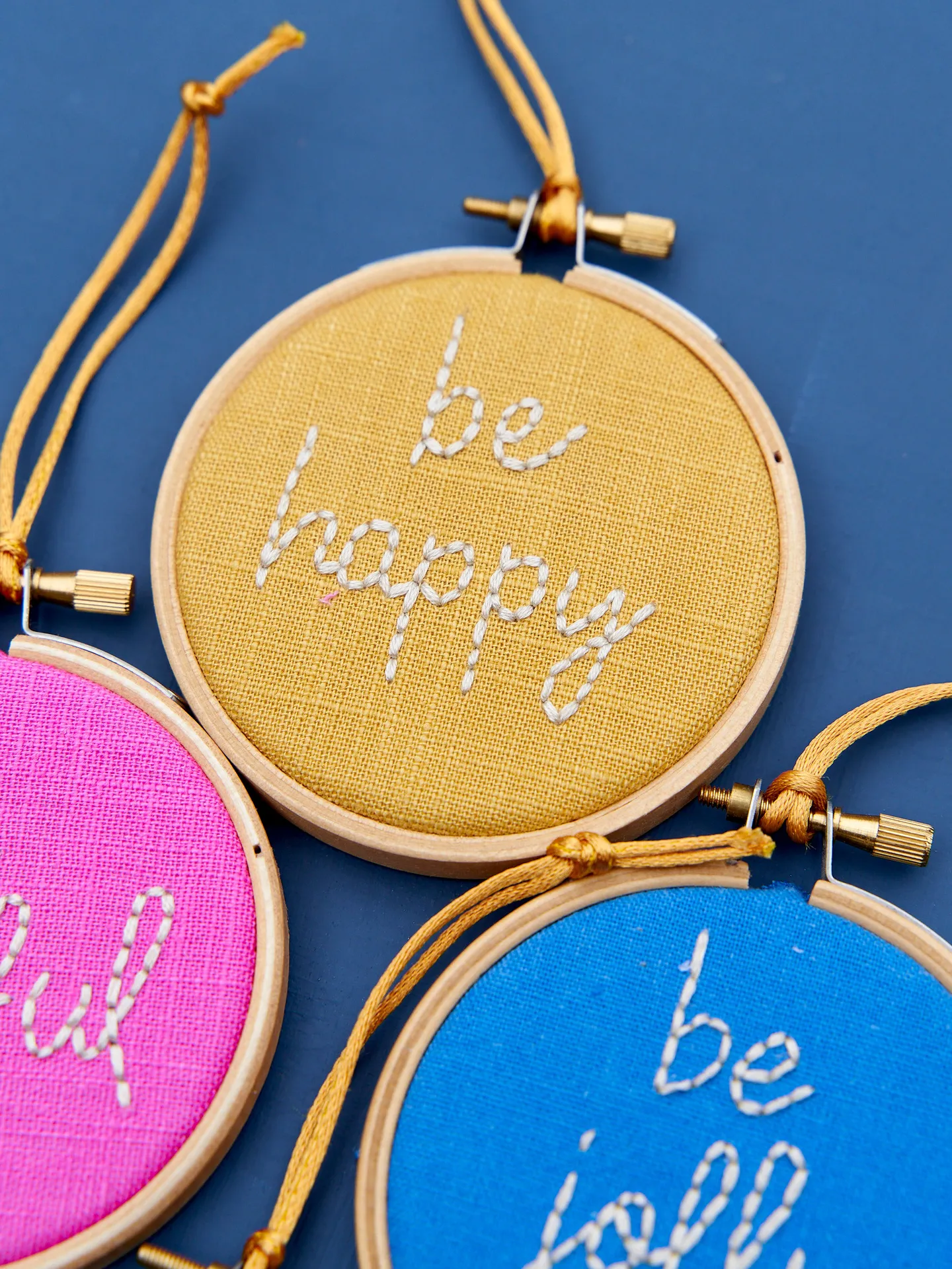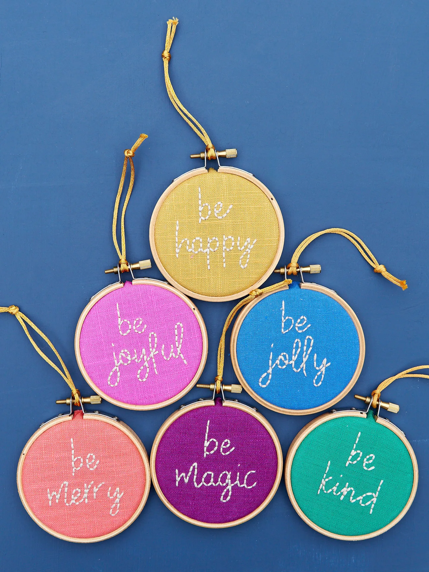 Choose from one of our feel-good, positive bauble designs to add to your tree this year. These mini hoops are the perfect size for hanging on the tree, are hand stitched by us and made to last!