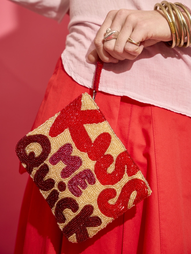 The Mini Beaded Clutch is the perfect, handheld accessory that's sure to get you noticed. Keep your cards and keys close whether you’re out and about or use as a portable make up bag that will always make you smile. This Mini Beaded Clutch makes the perfect gift for a friend or a loved one that will speaks volumes.