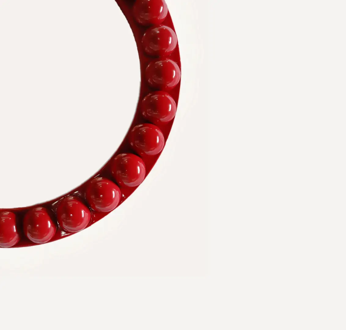 Embellished with 'oversized' 3cm-width wooden bobbins and finished in a glossy lacquer.