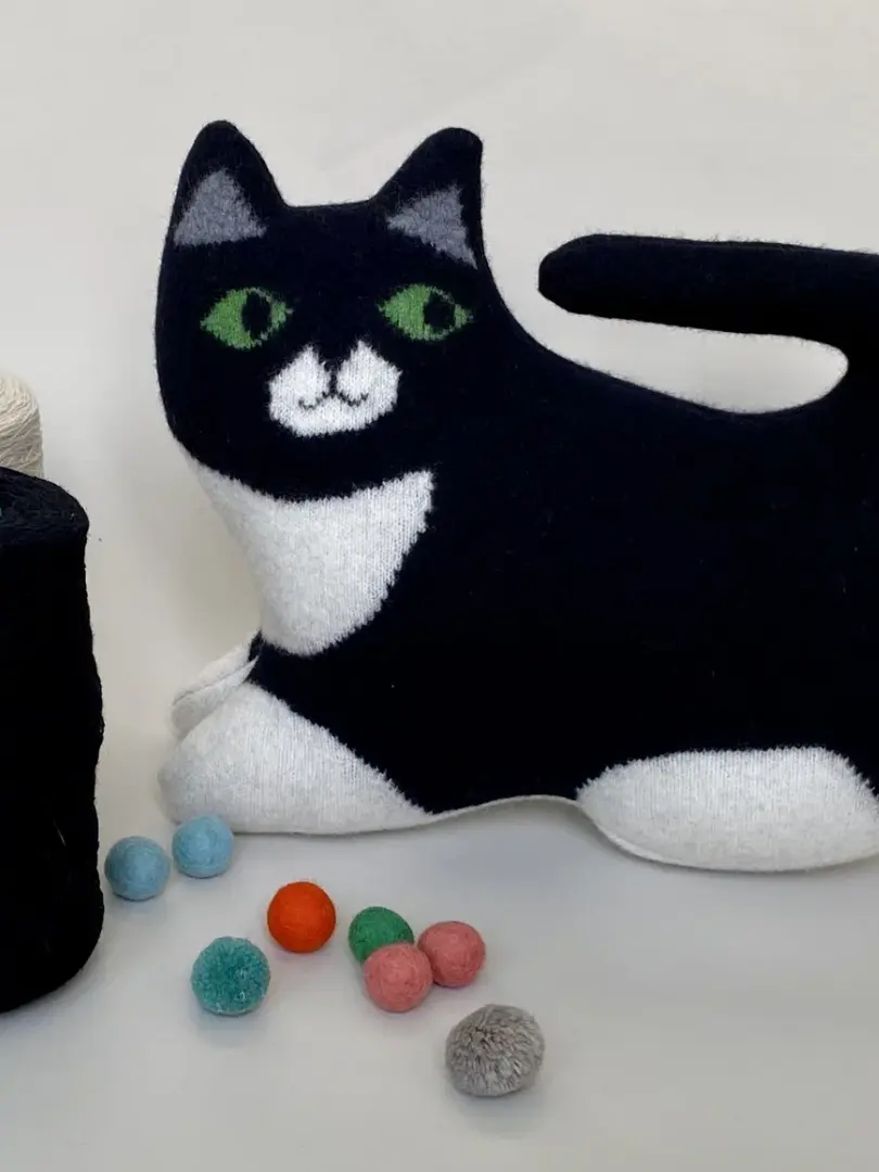 These Ginger and Grey Tabby Cats and Black and White Cats have been handmade from 100% knitted lambswool which has been lightly felted. After sewing Tabby cat is filled with polyester toy stuffing.