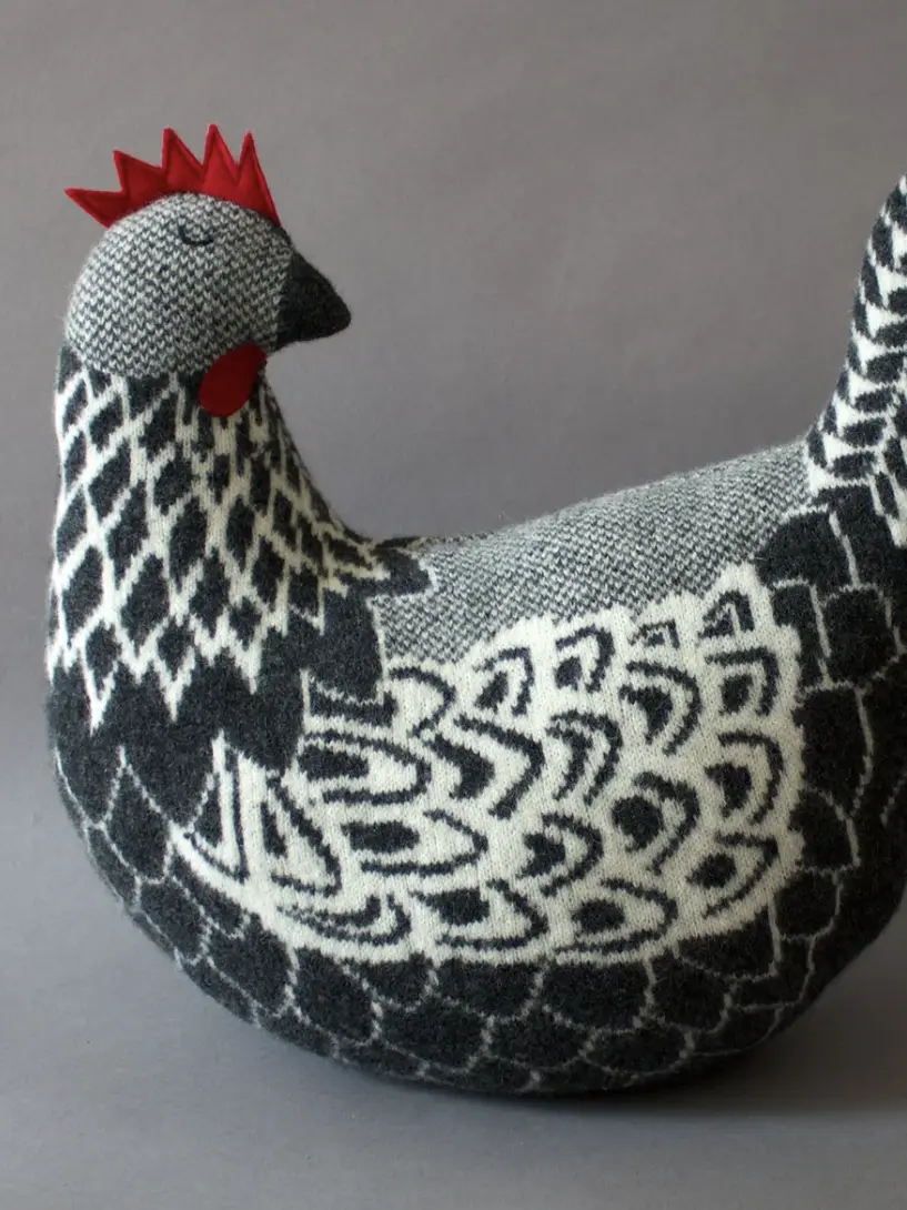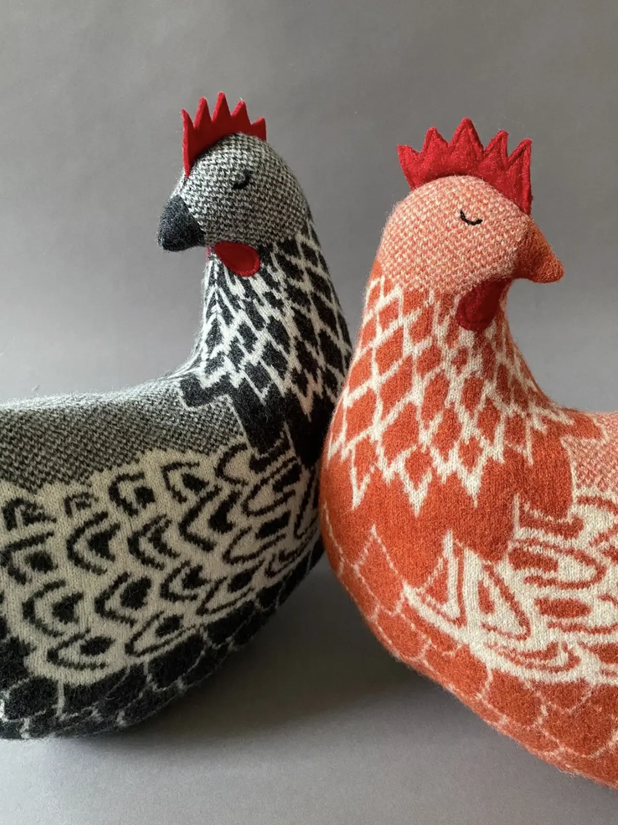 Mrs Hen is beautifully soft and can be used as a cushion or toy to decorate a nursery, bedroom or living room. Available as a Cinnamon Queen or a Grey Speckled Ranger.