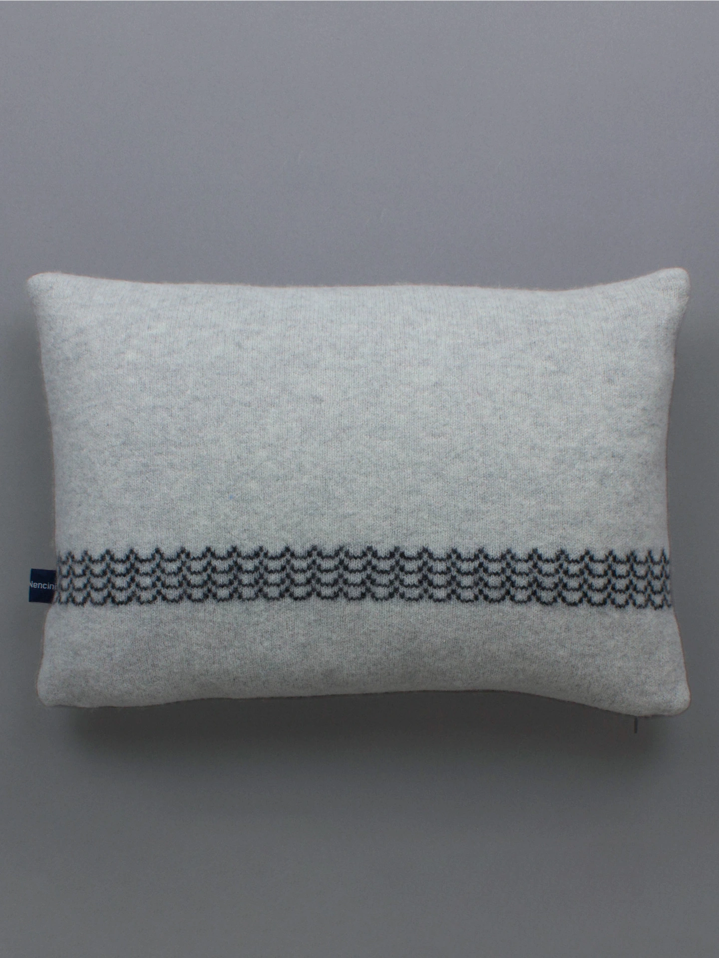 Designed and made in my studio in Norfolk using 100% lambswool yarn for a super soft feel, it has a black zip fastening and is stuffed with a duck feather cushion pad. Can be used as a cushion or pillow on your favourite chair, or to decorate a bed.