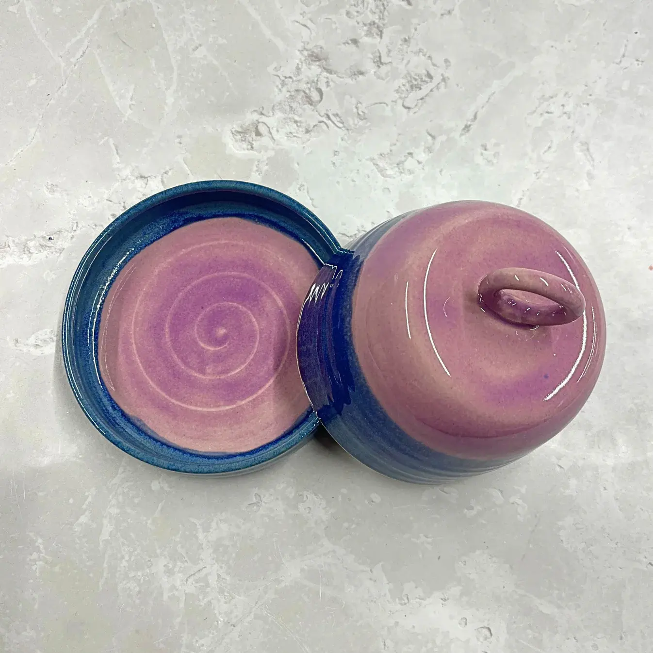 Elevate your breakfast set with a wheel thrown butter dish and lid that will impress any guest or simply bring joy to your morning. Designed to make scooping butter easier with raised edges...