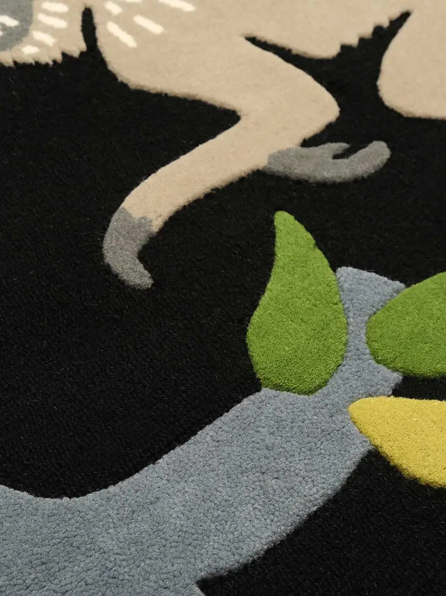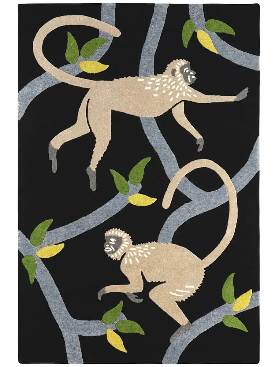 Hand tufted in 100% wool, the Langur Rug combines high cut pile monkey, branch and leaf motifs with a low loop pile base to create a unique textured effect.