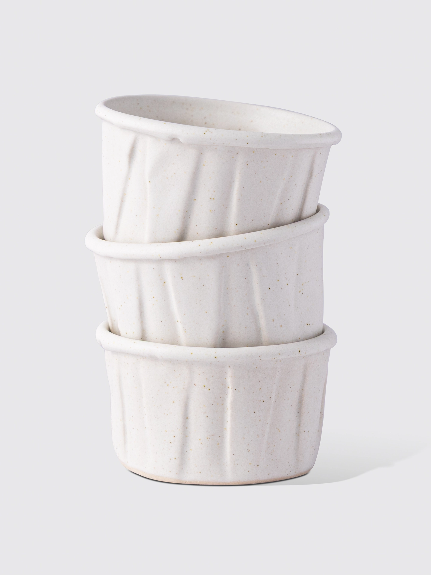 Each of our Large Ceramic Sauce Pots is handmade by our team in the UK. They are made from a stoneware body then coated in our Paper White, food-safe glaze which is microwave and dishwasher safe.