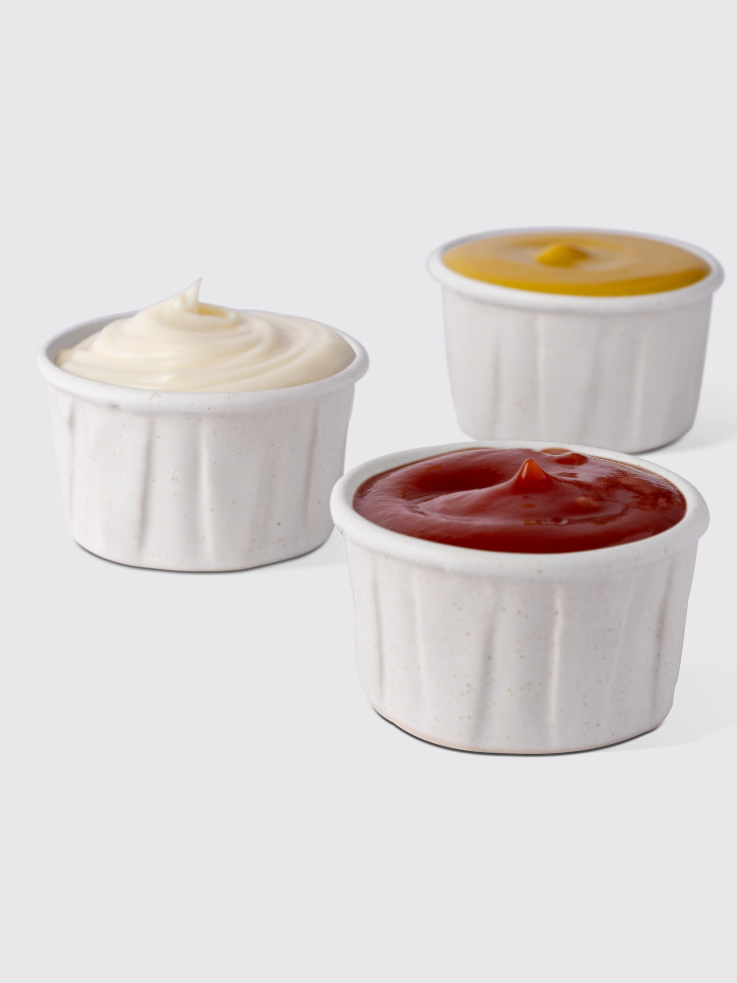 Puts a quirky twist on the disposable paper sauce containers you normally see in fast-food restaurants.