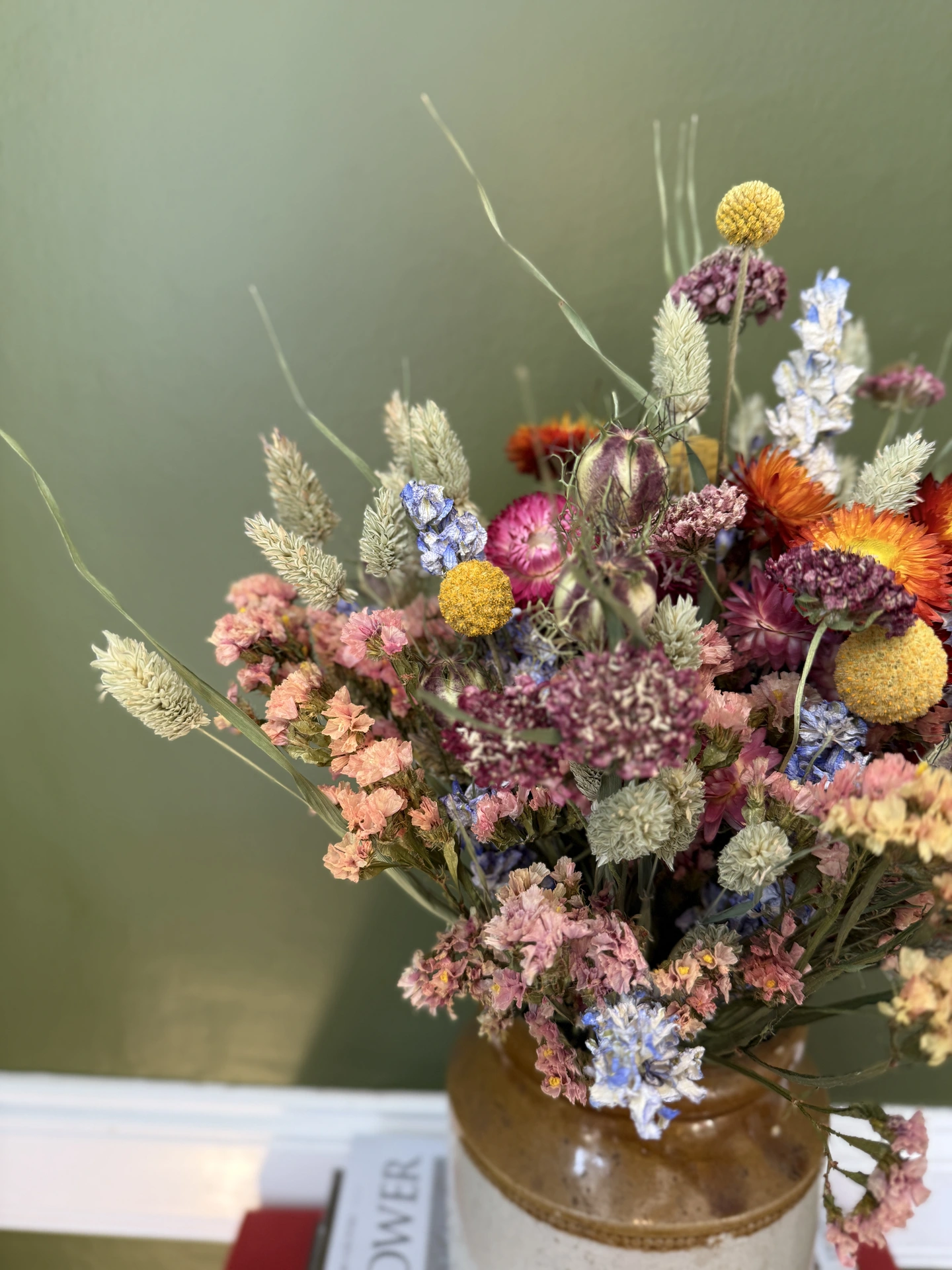 Ingredients: Craspedia, Larkspur, Limonium, Nigella, Ornamental Grasses, Scabious and Helichrysum.