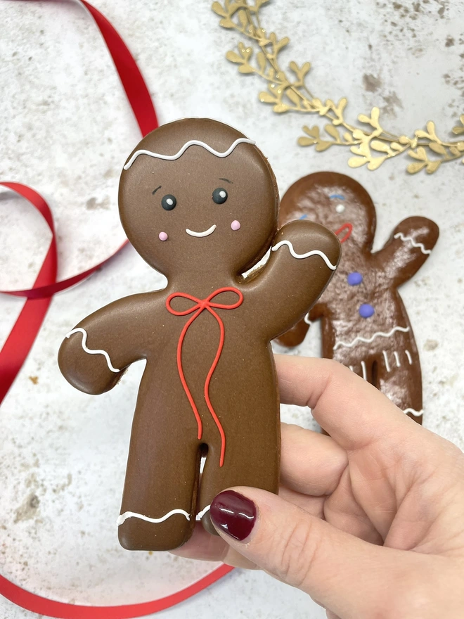 A classic gingerbread character everyone recognises and loves. This design is not fully iced, allowing the natural gingerbread to show through, creating a more traditional, rustic appearance.
