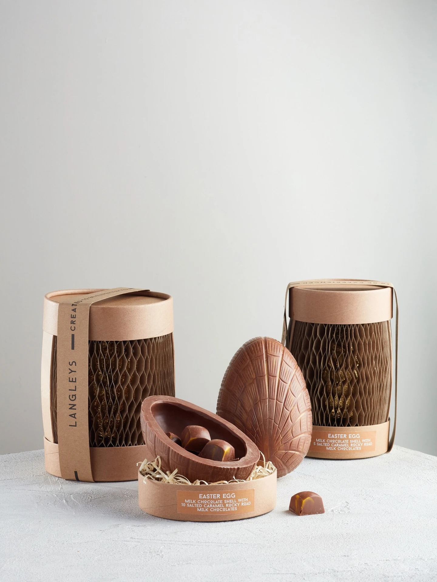 Protective Packaging: Our Easter Eggs are wrapped in foil and then packaged in the innovative "flexi-hex" packaging, created just down the road in Porthleven. This packaging is completely eco-friendly and we promise you that your egg will arrive undamaged and ready to be cracked by the lucky recipient. We haven't just minimised Easter Egg packaging we have turned it on its head!
