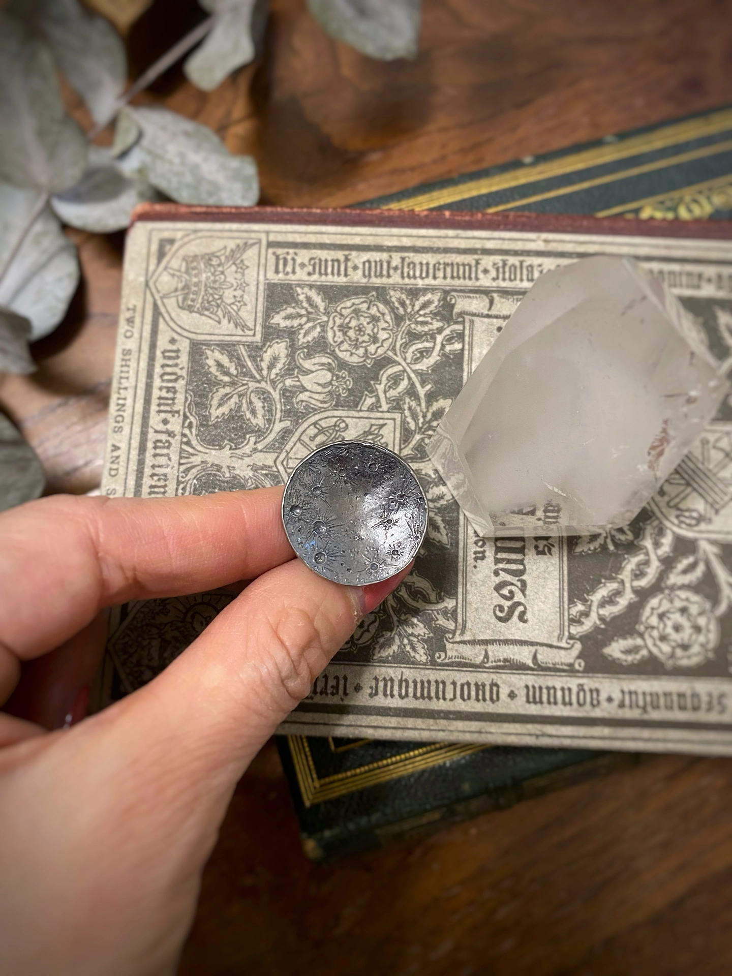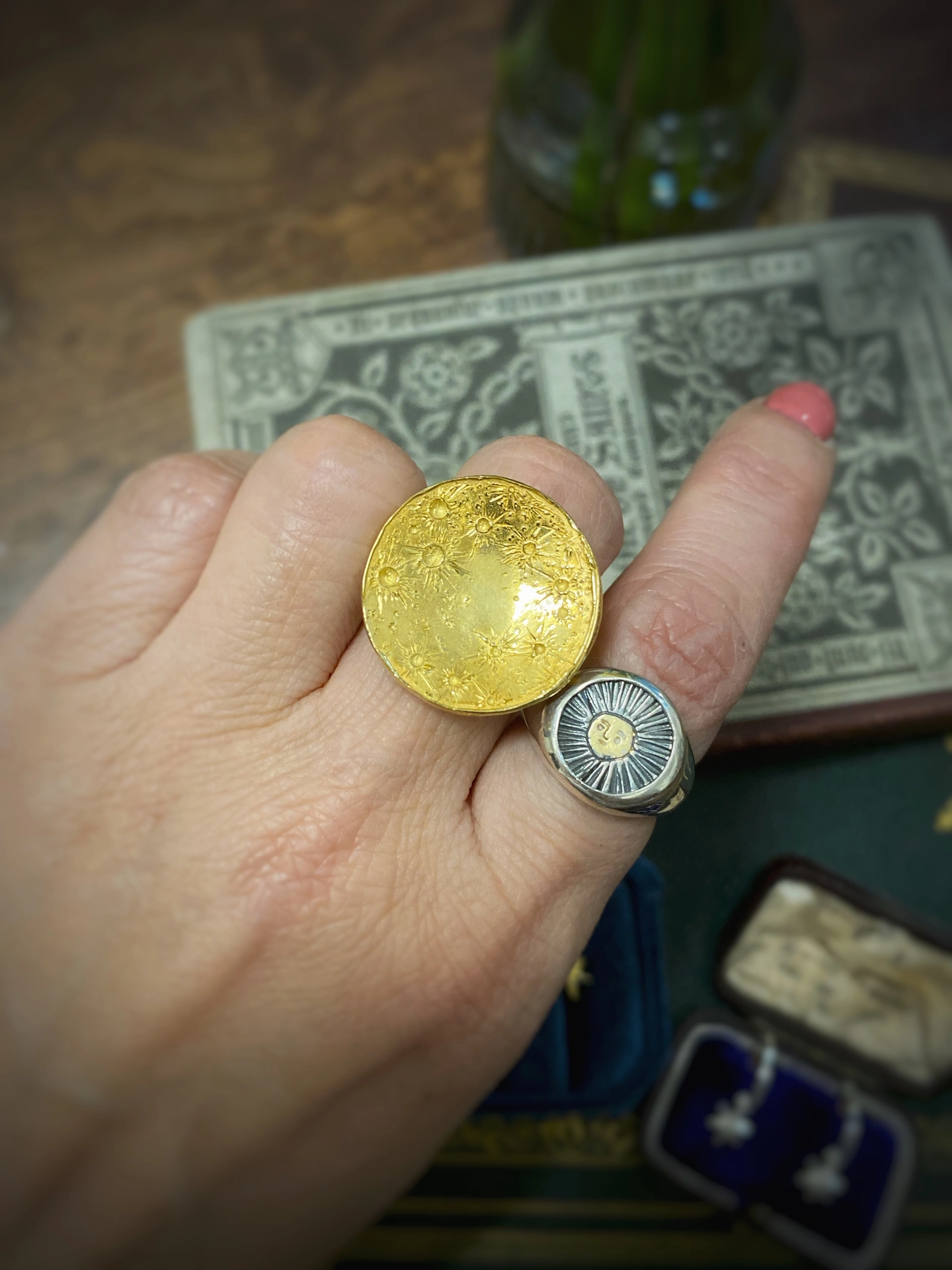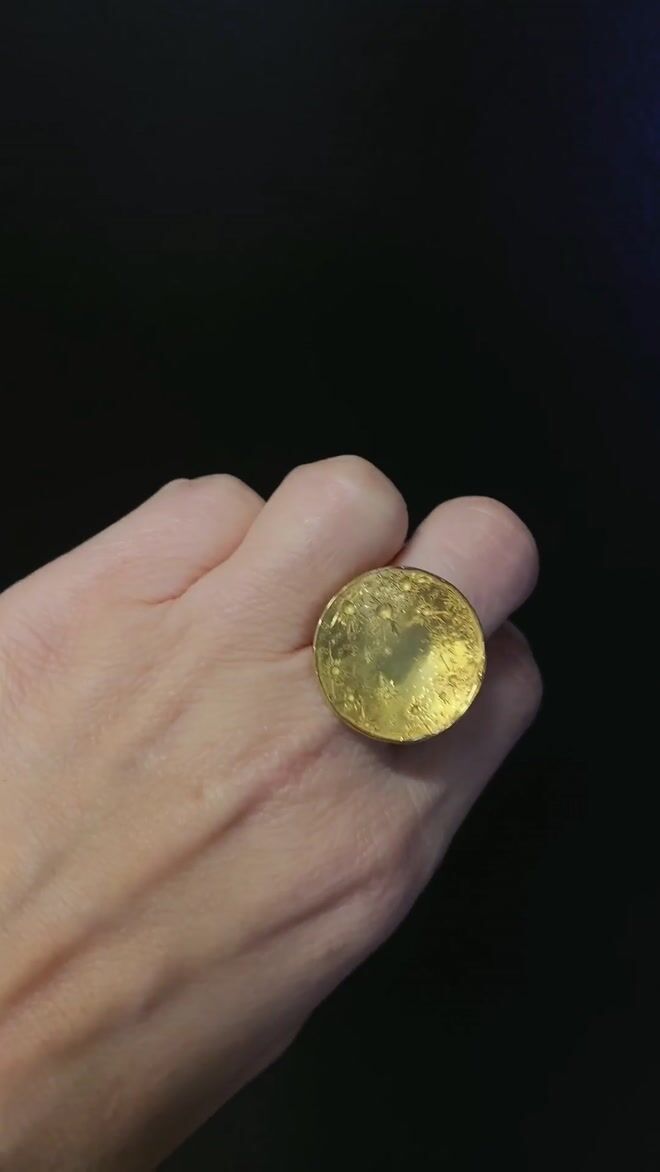 Embrace the enchanting allure of our Large Moon Ring. Made from recycled silver, this concave ring features a beautifully detailed moon crater texture that captures attention. The large moon design adds a touch of mystique to any outfit. Handcrafted with care, this ring is a unique and sustainable choice for your jewellery collection.