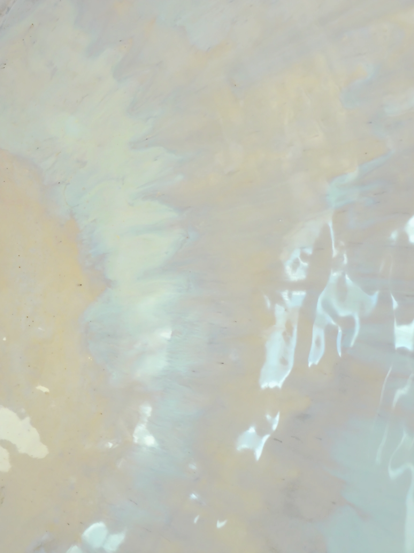 The glaze detail is organic with drips and flows of light creams and pinks moving towards a satin light pink centre.