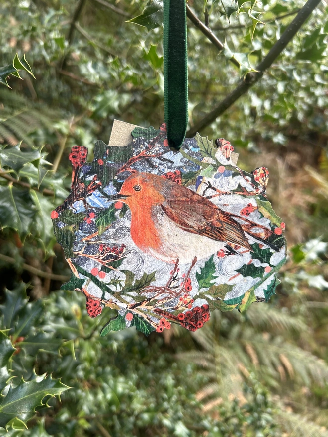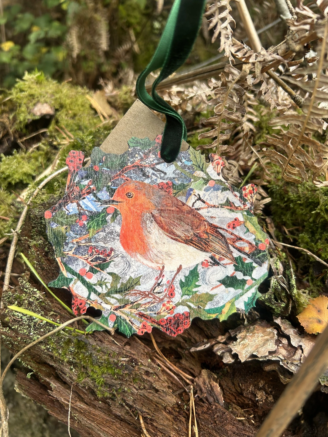 Each decoration is approximately 15cm diameter and printed on 3mm thick sustainably sourced birch plywood.