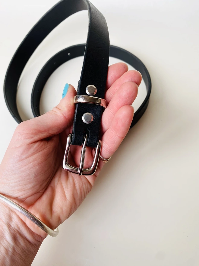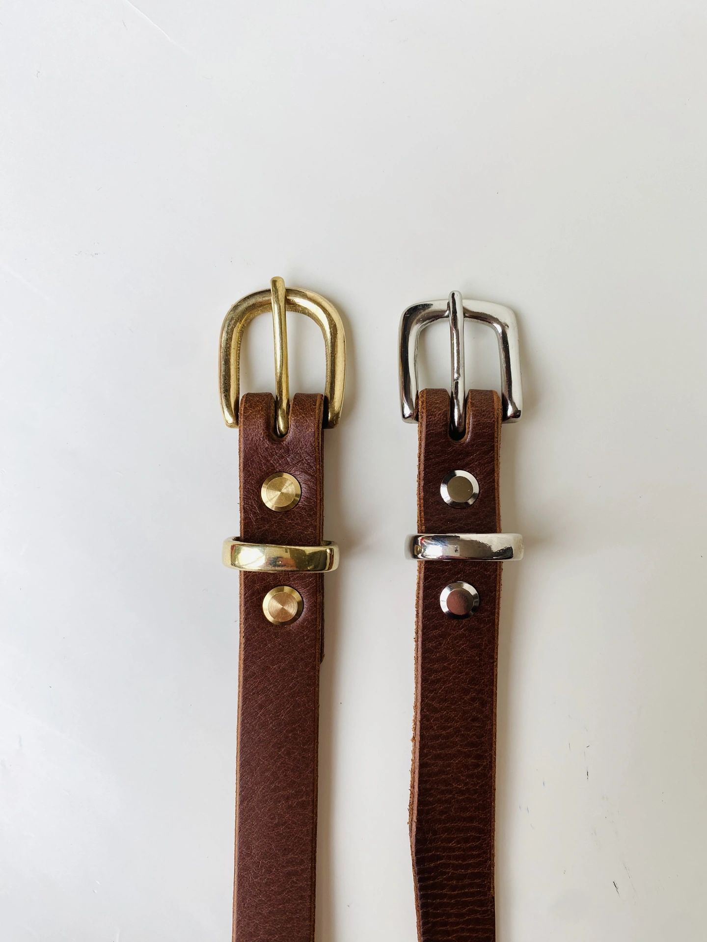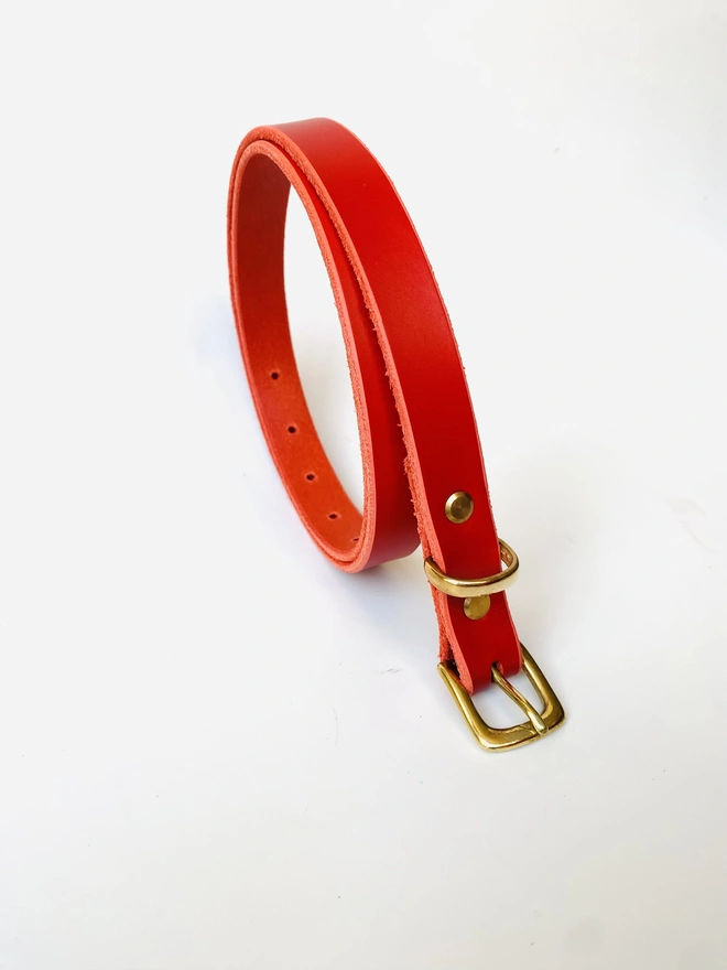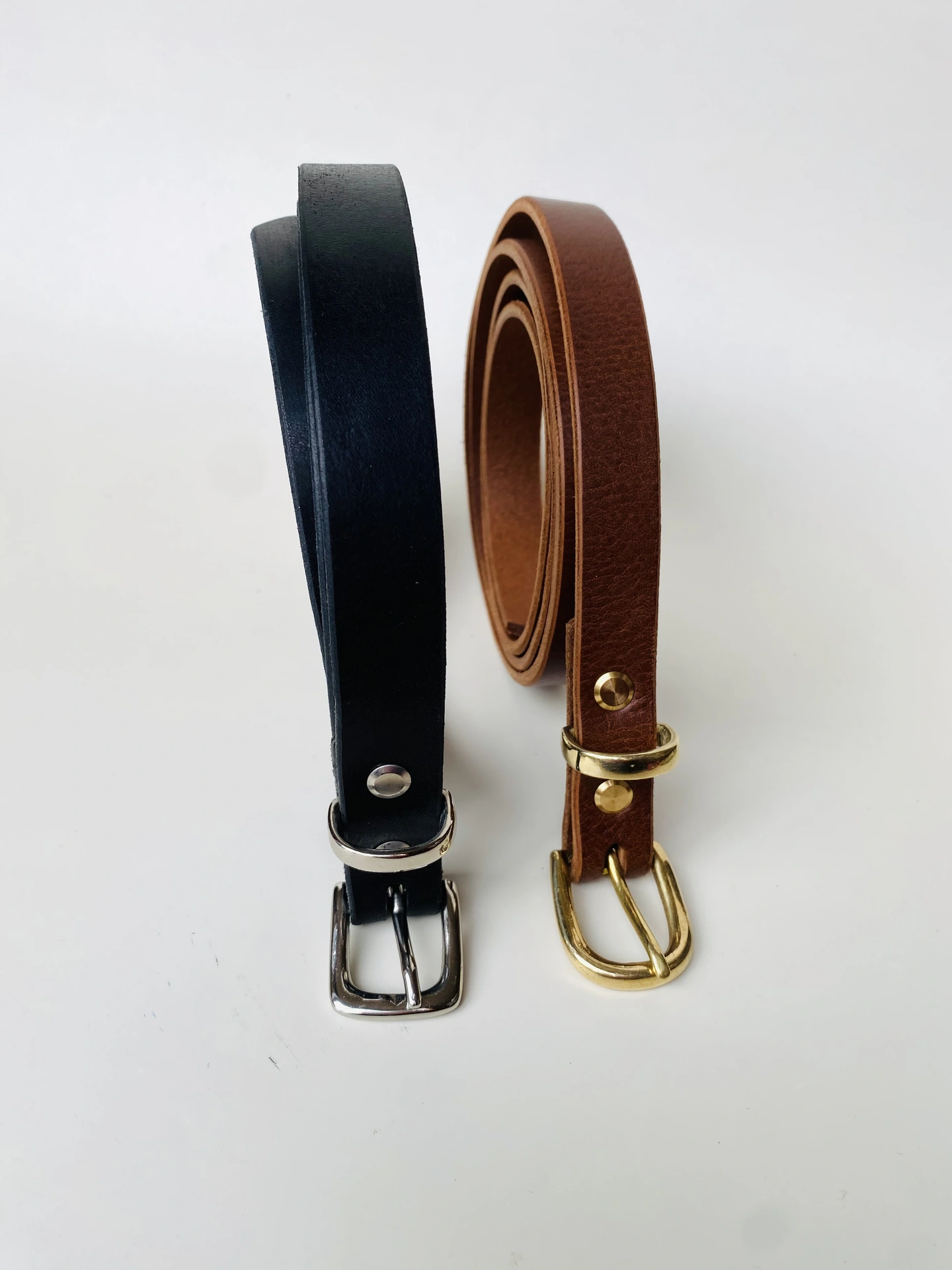 These beautiful leather belts come in three colours black, red and brown and a choice of buckle colours, brass and silver. All my products and bags are designed and handmade by myself with great care taken at each stage to produce the perfect timeless piece which will wear beautifully over time.