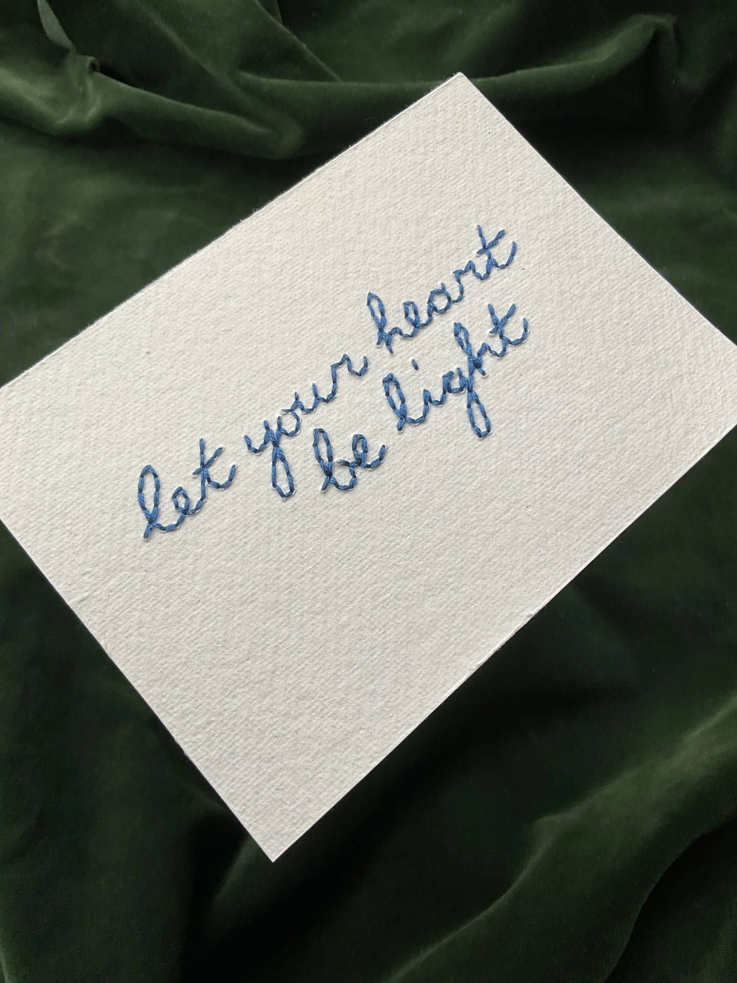 'Let Your Heart Be Light’ Hand Embroidered Card