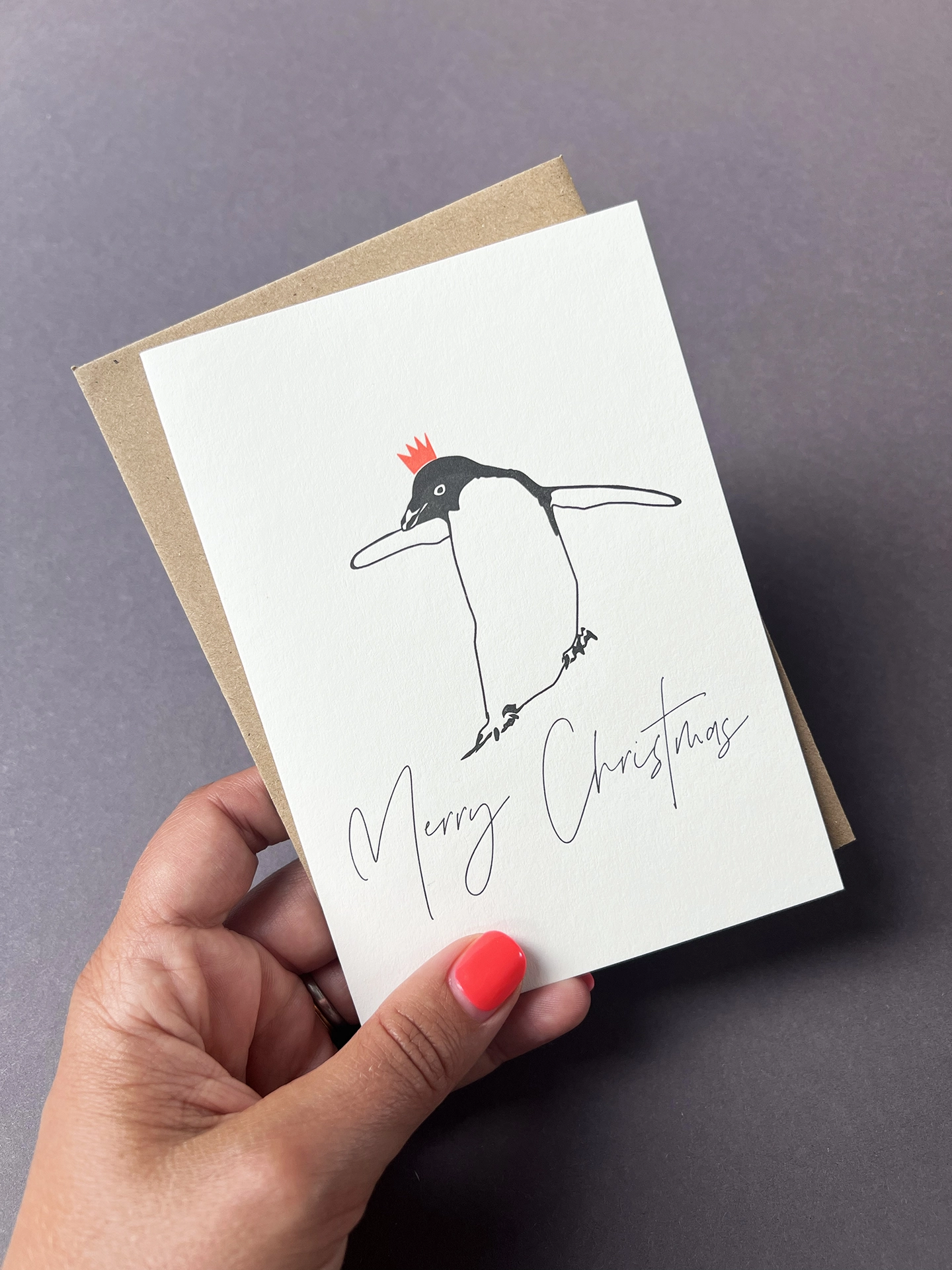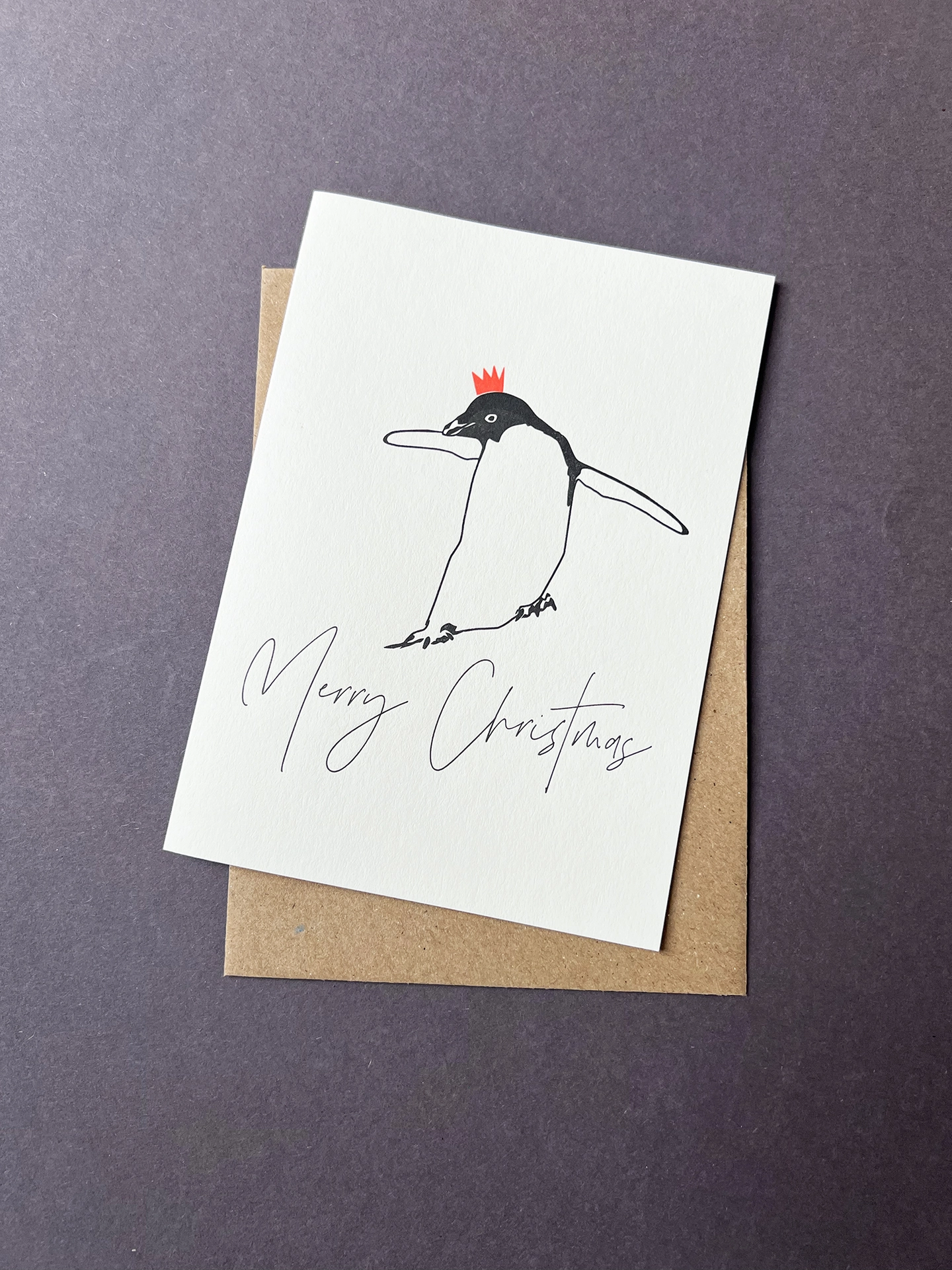Letterpress "Merry Penguin" Christmas Greetings Card
