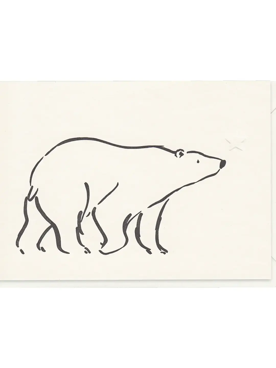 A warm, winter themed greeting card for the festive season. The fourth in a series of four cards, all featuring 'The Bear and The Star'. Features a blind debossed star detail.