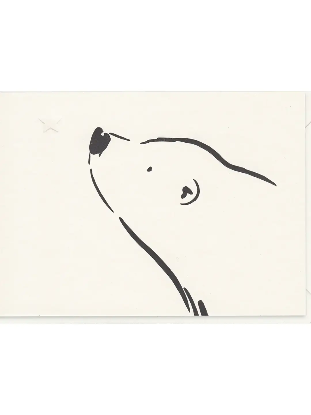 A seasonal greeting card for winter and the Christmas period. The first in a series of four cards, all featuring 'The Bear and The Star'. Features a blind debossed star detail.