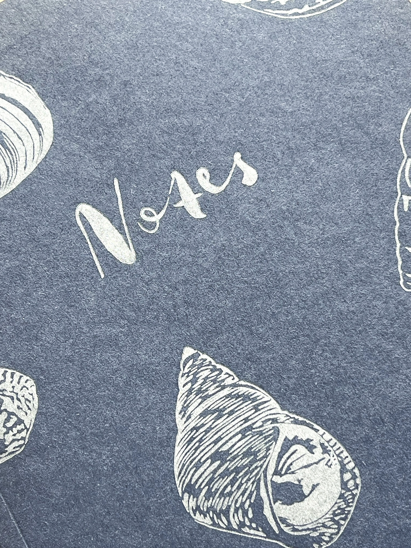 Our gorgeous letterpress shell notebook has a luxury letterpress printed cover. Featuring our favourite shells. The cover is printed in silver on midnight blue board, with lined pages. The perfect notebook for any seaside lover.